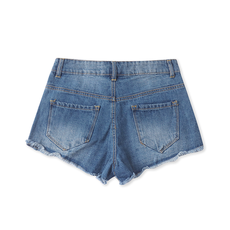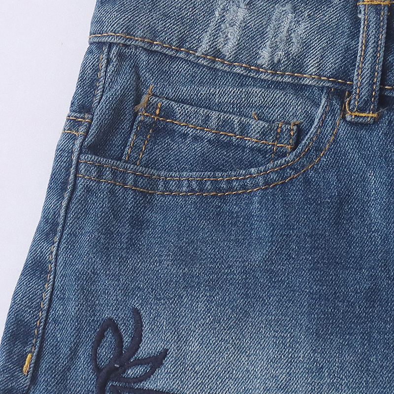 外贸毛边刺绣牛仔短裤时尚百搭