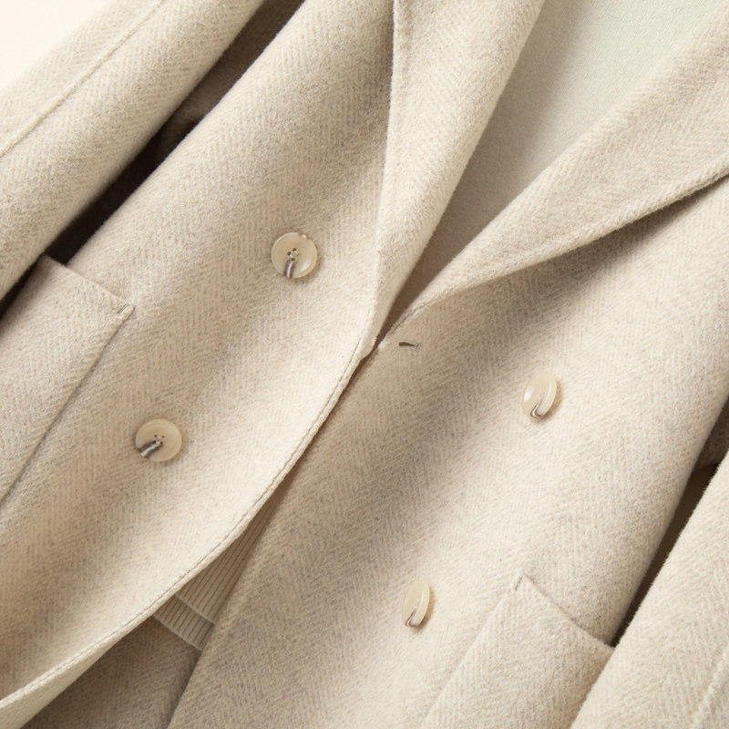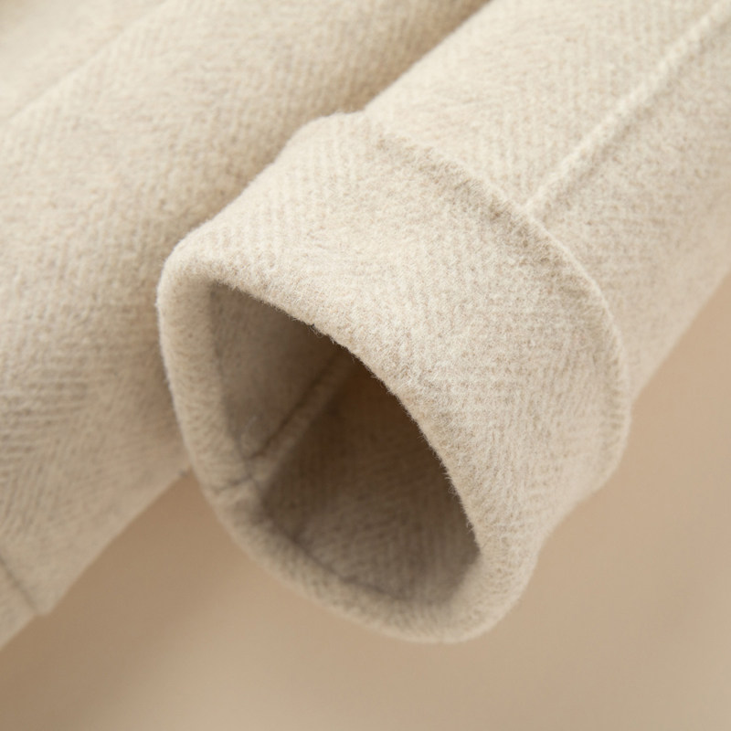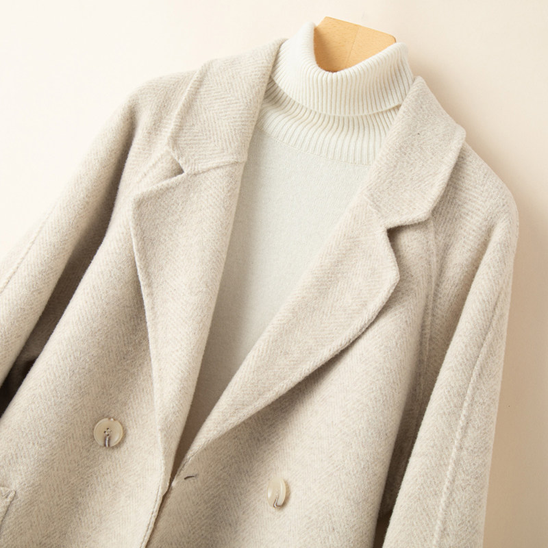 秋冬赫本风反季双面羊绒大衣女中长款宽松韩版人字纹羊毛呢子外套