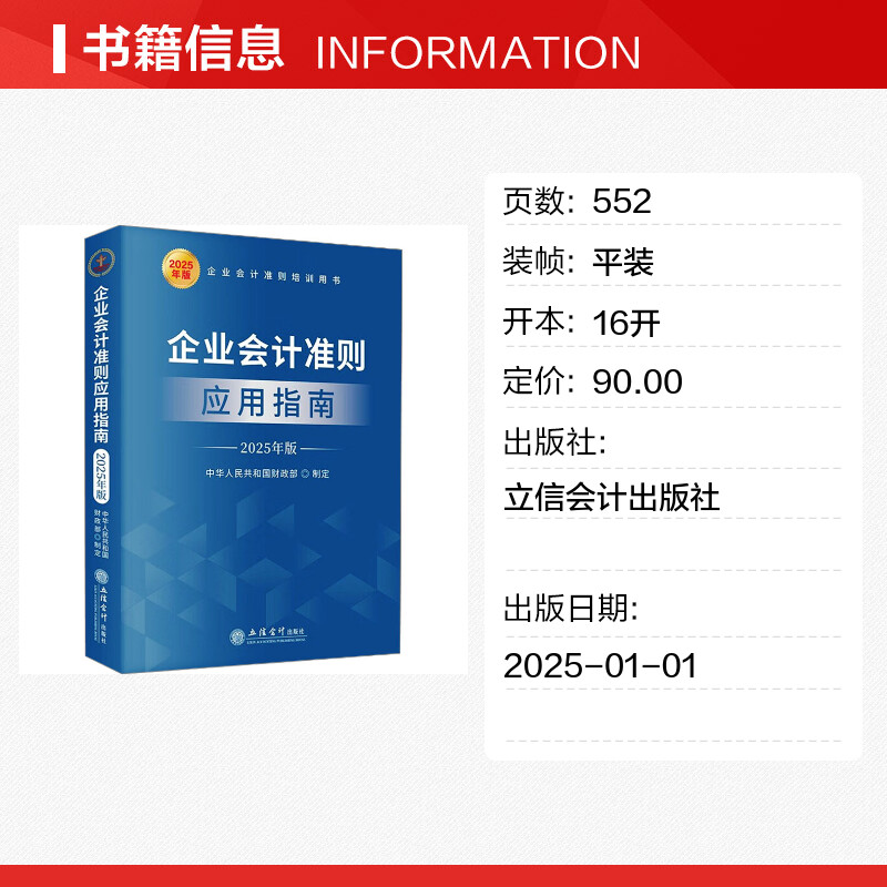 企业会计准则应用指南 2025年版 中华人民共和国财政部 会计经管、励志 新华书店正版图书籍 立信会计出版社