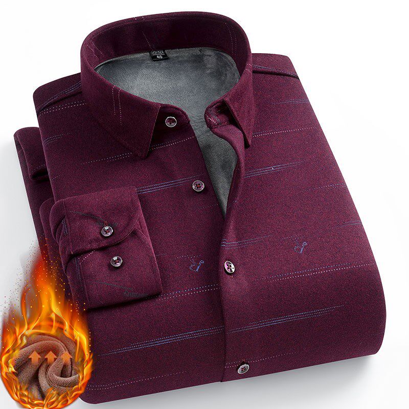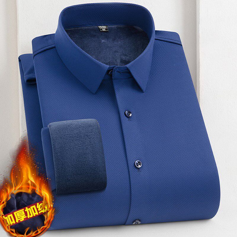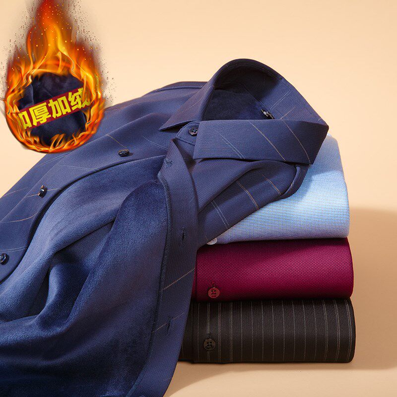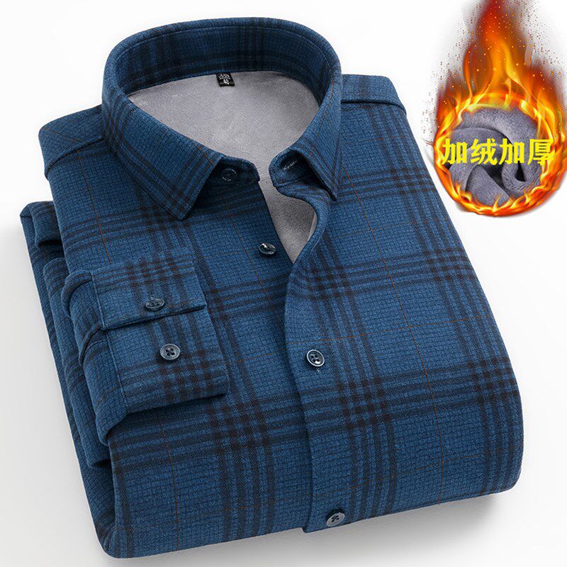 冬季男士保暖衬衫加绒加厚宽松中老年长袖衬衣男父亲寸衫男爸爸装