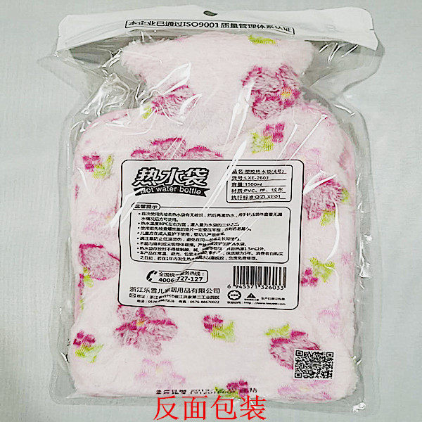 全新正品乐雪儿加厚塑胶热水袋 卡通绒布套 2601/2602/2603