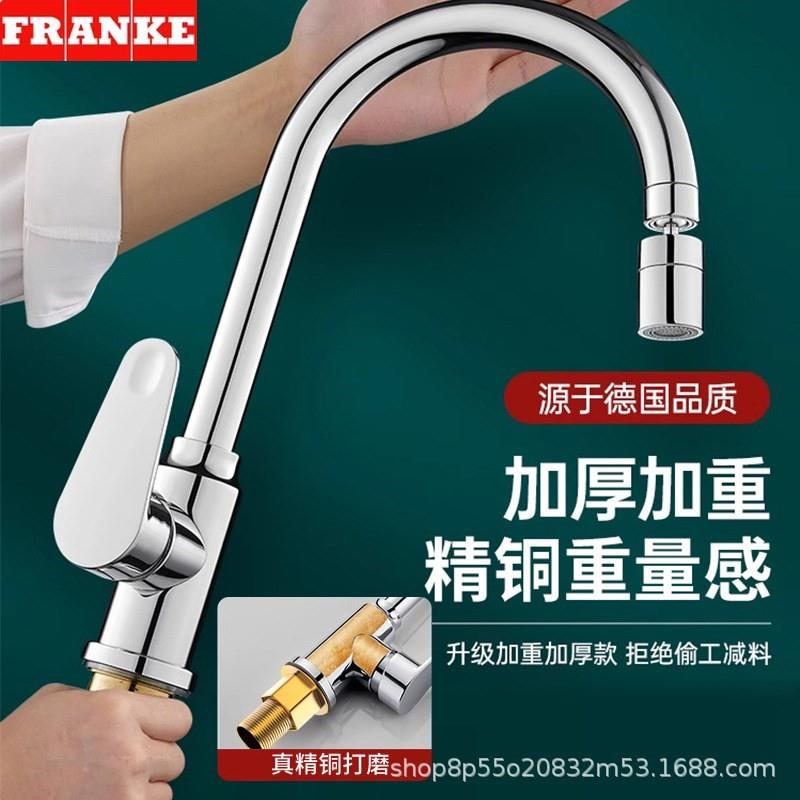 弗兰卡精铜厨房水龙头冷热洗菜盆水槽洗碗池单冷旋转增压厨用防溅