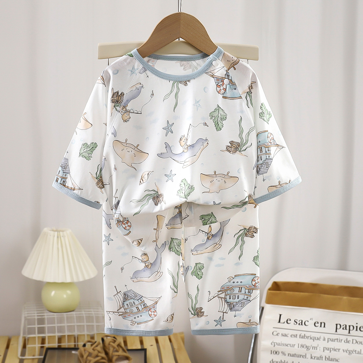 无骨儿童睡衣家居套装2025夏季薄款透气男女宝宝七分袖休闲空调服