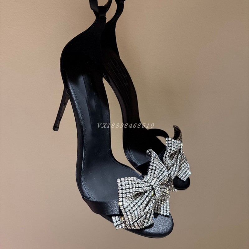 外贸性感细高跟凉鞋女外穿玫瑰花蝴蝶结水钻气质御姐婚宴鞋大码42