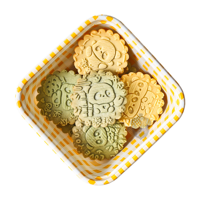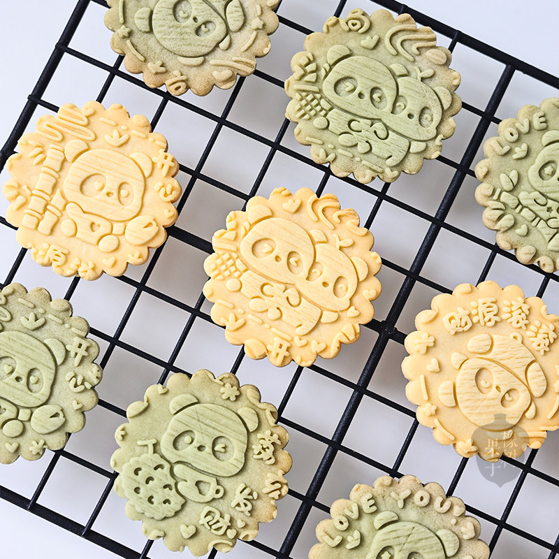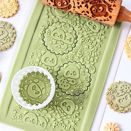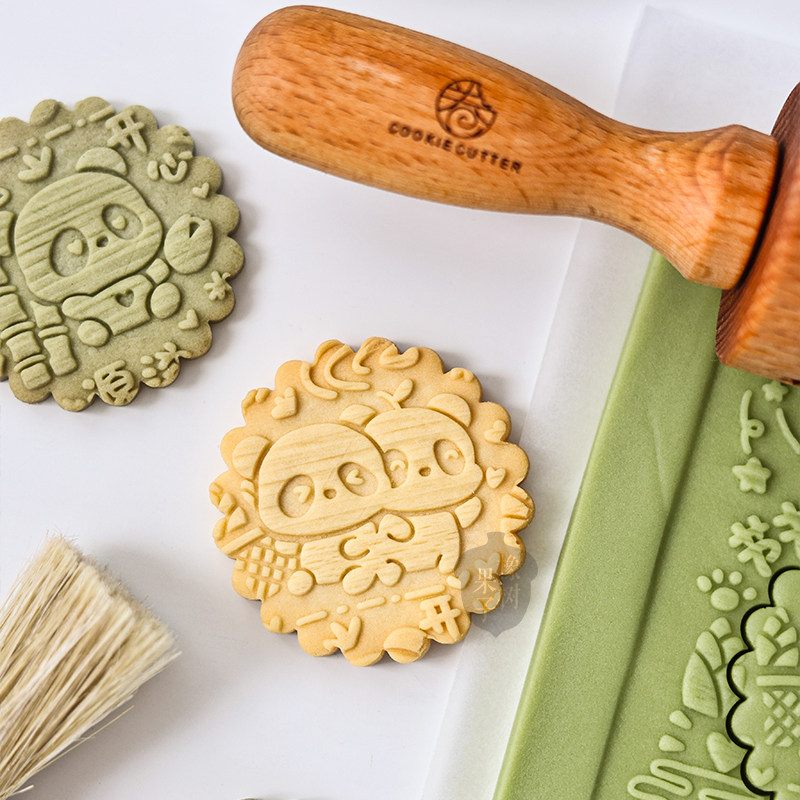 卡通熊猫春节祝福语饼干擀面杖 立体竹子中式新年曲奇馒头模具