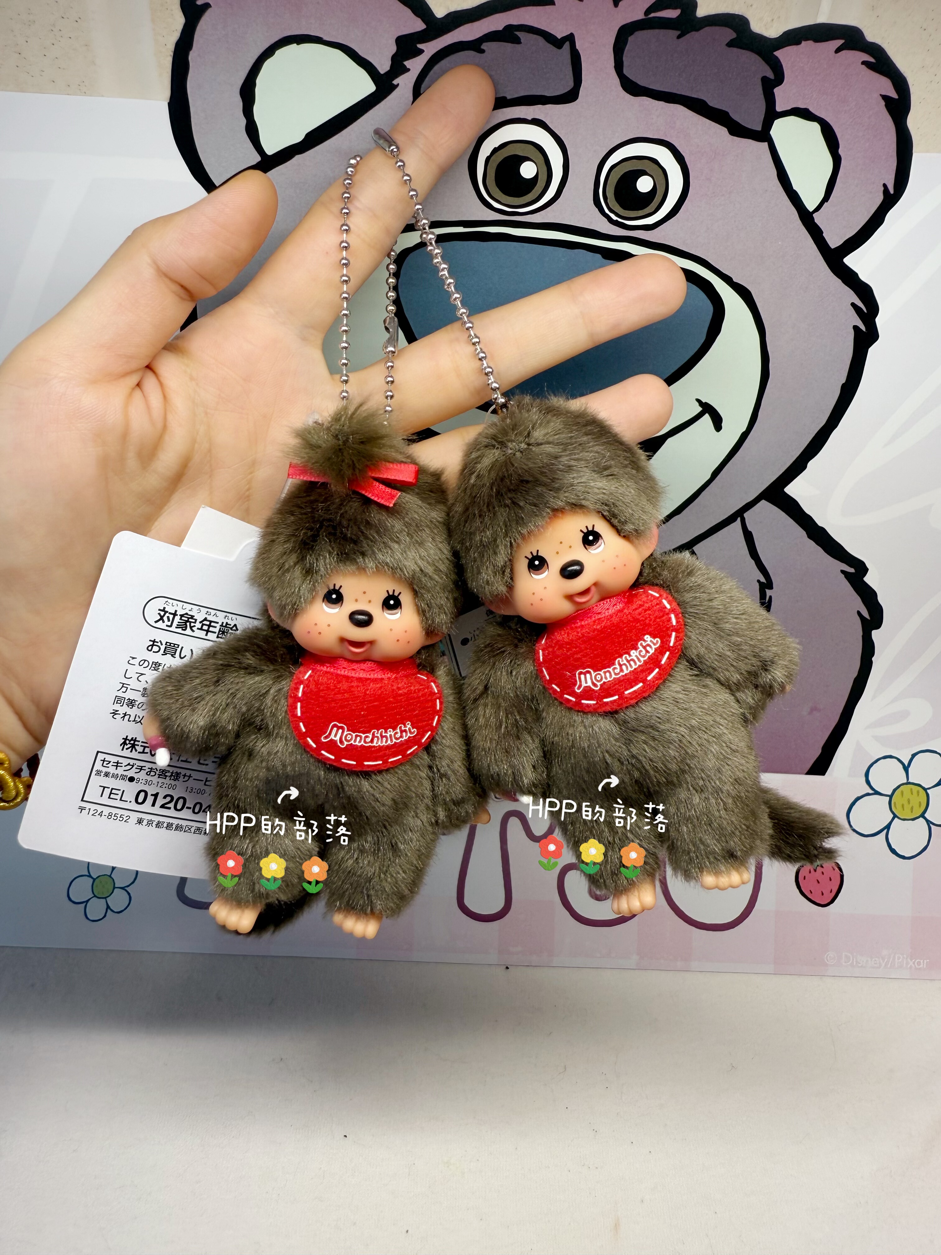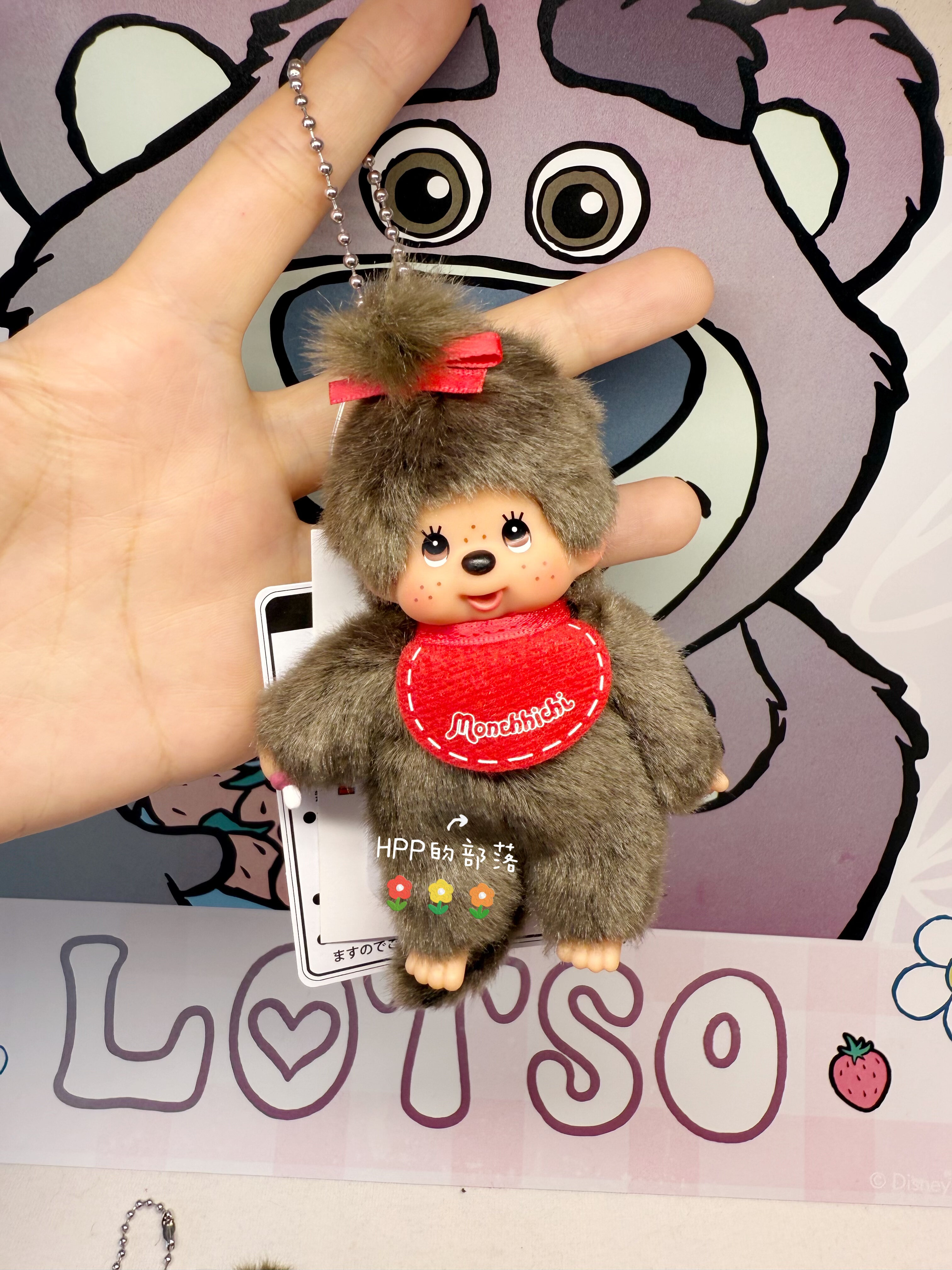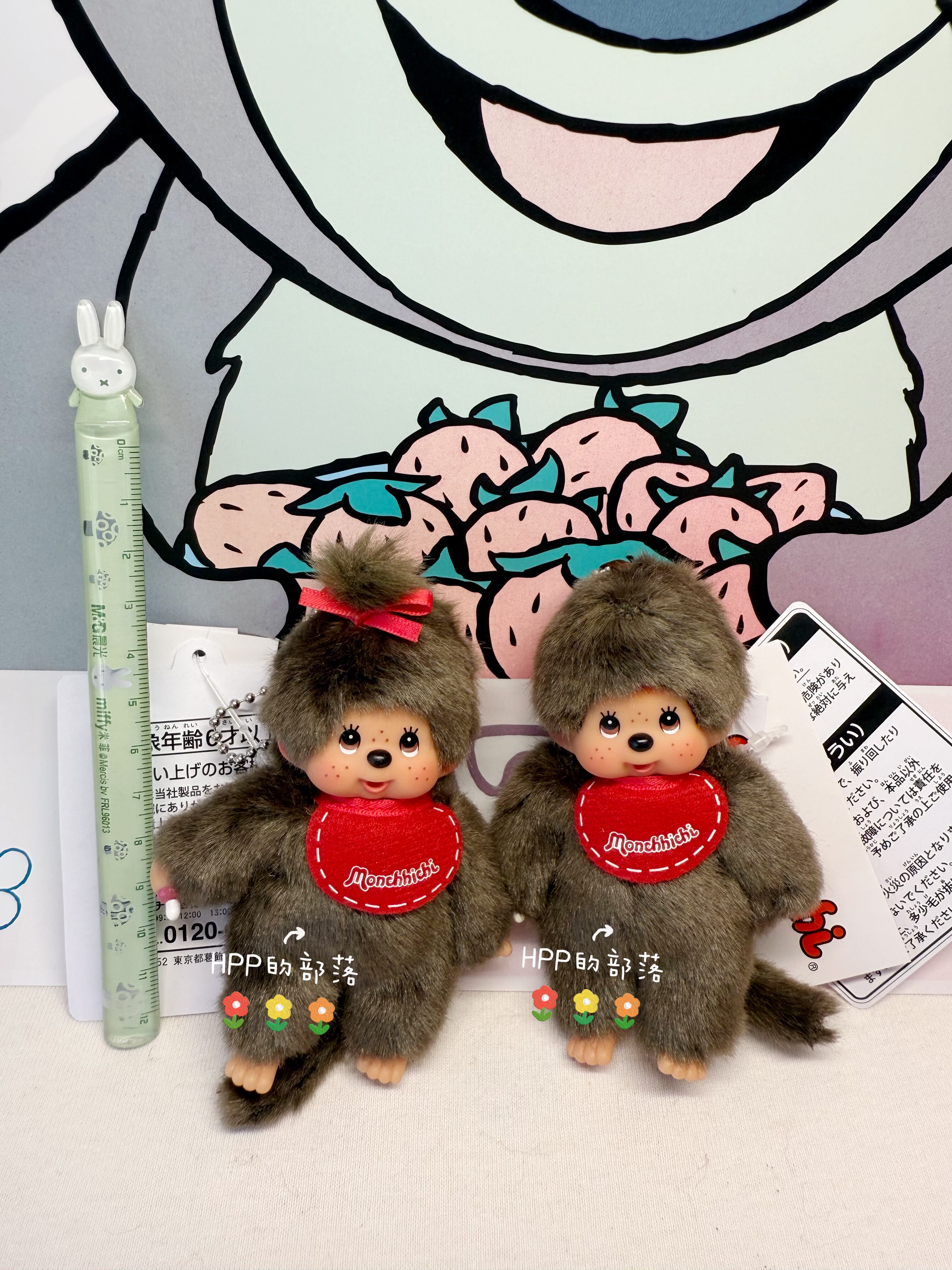 日本正版 Monchhichi 蒙奇奇 基本款 红色围兜 男生女生 小挂件