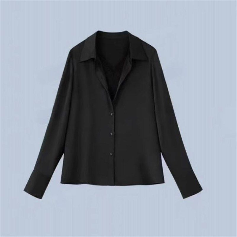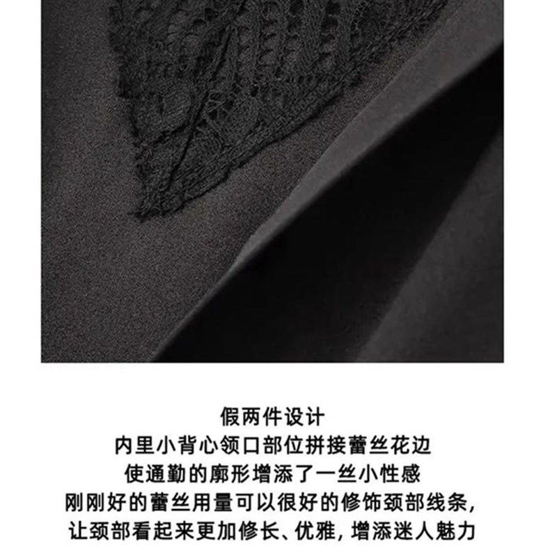 大洪黑白变奏假两件蕾丝衬衫女春季新款百搭纯色女人味衬衣