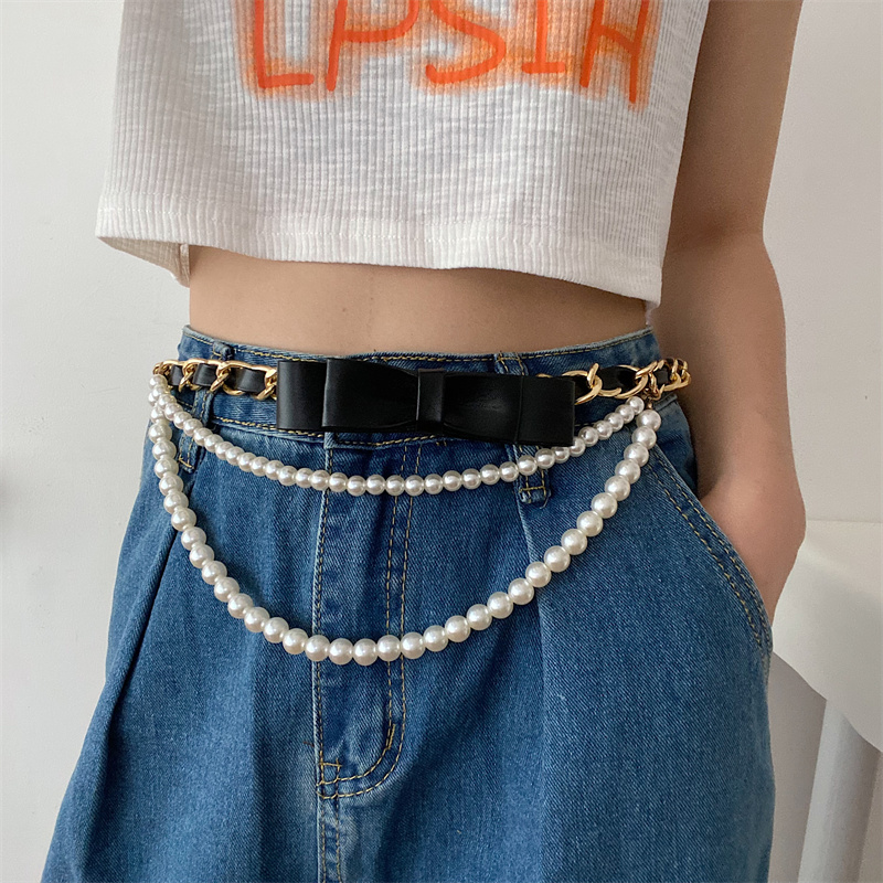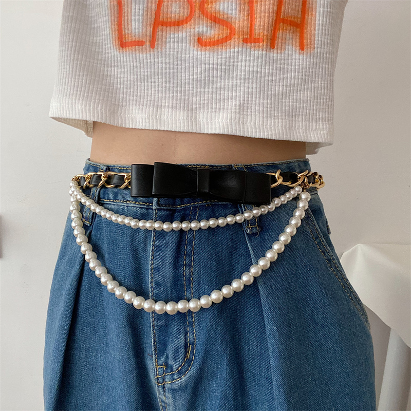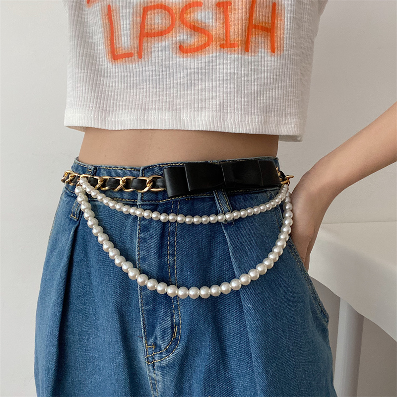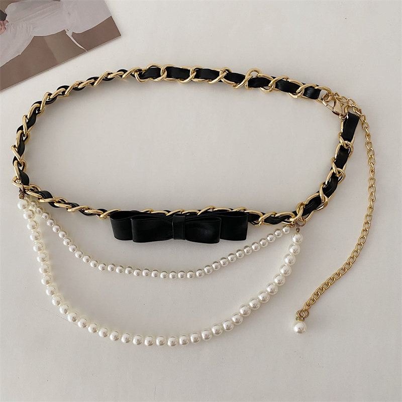 珍珠链条细腰带女高级感配连衣裙潮腰链收腰配饰百搭装饰腰带女士