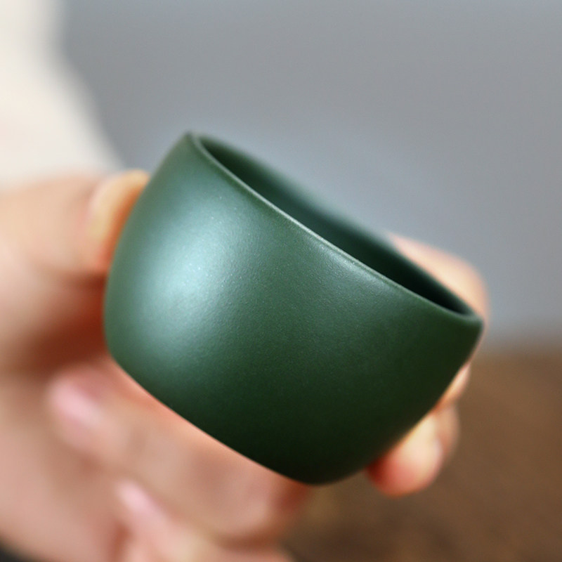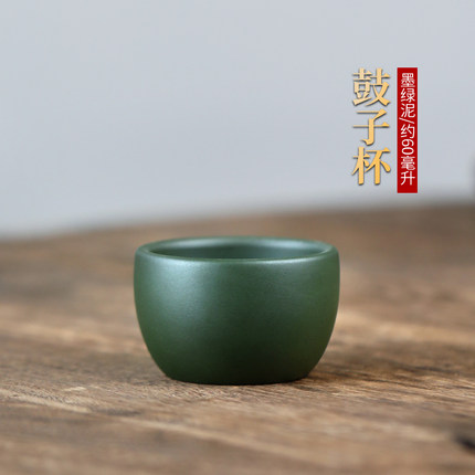 宜兴原矿紫砂全手工主人品茗杯功夫茶杯家用茶具墨绿泥鼓子小杯子