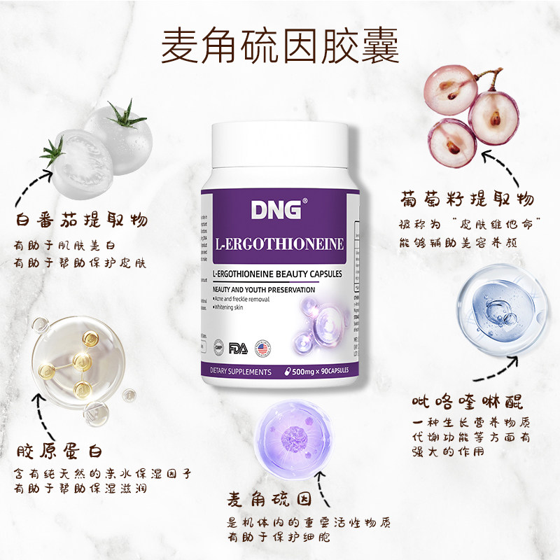 【自营】DNG进口麦角硫因胶囊pqq口服胶原蛋白肽内调焕白葡萄籽