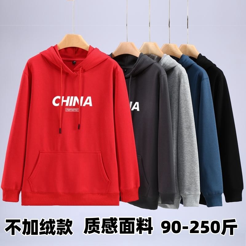 春秋薄款加肥加大码男卫衣长袖套头连帽衫宽松休闲上衣胖子潮外套