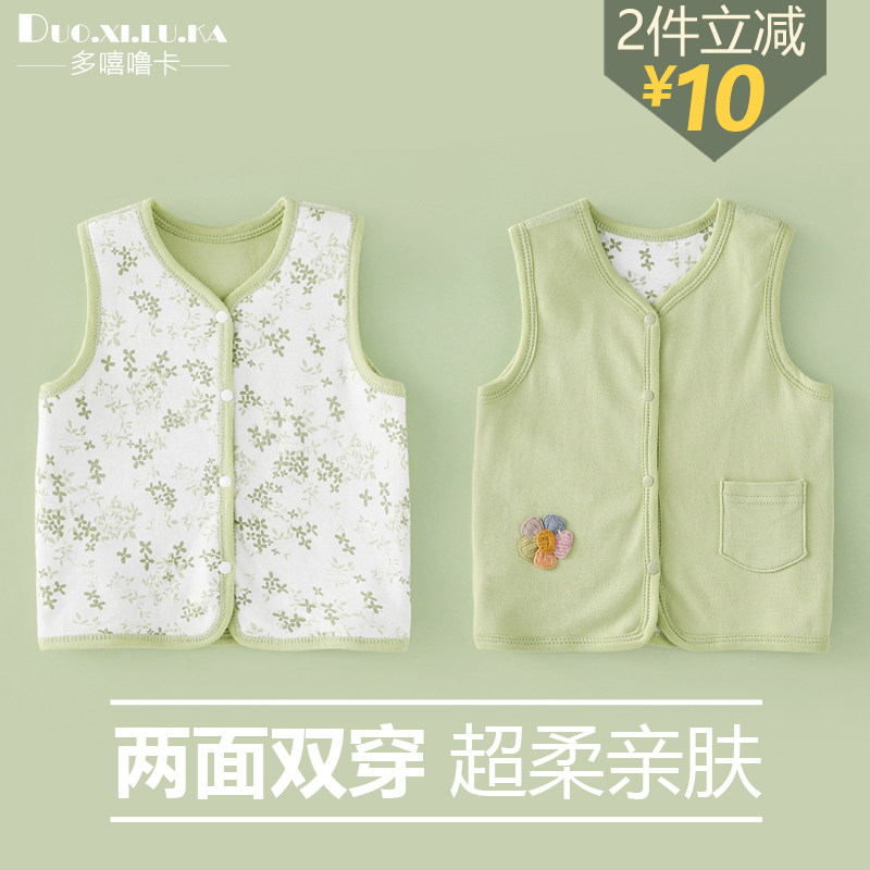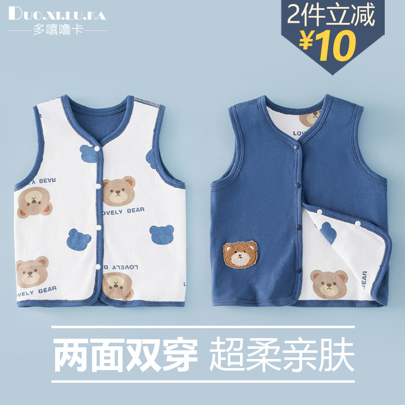 宝宝马甲春秋季2025新款儿童小马夹外穿男女童纯棉背心双面坎肩潮