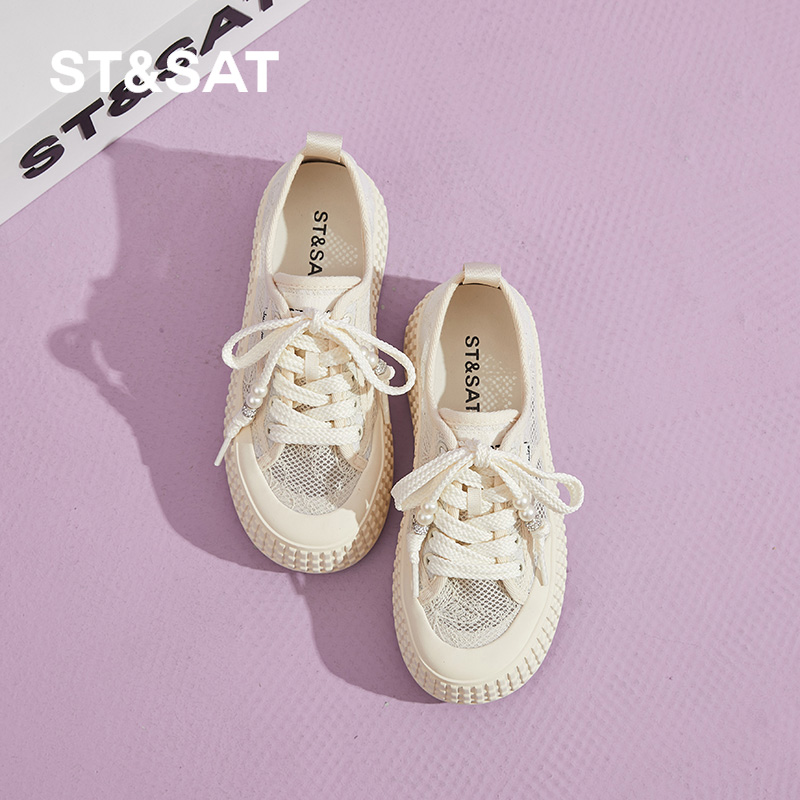 星期六春夏4.8CM厚底增高休闲板鞋小白鞋镂空网面透气刺绣国风