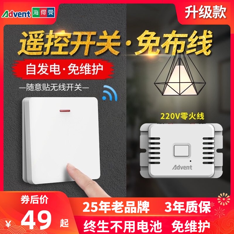 海得曼无线遥控开关面板免布线220v智能家用控制电灯头双控随意贴