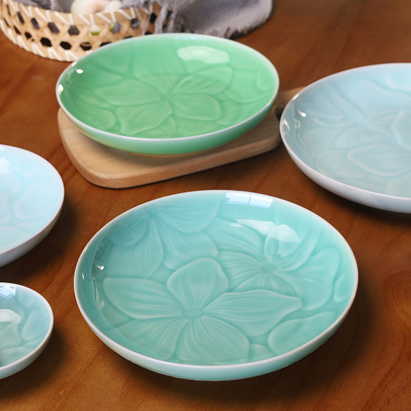 龙泉青瓷陶瓷盘子菜盘家用2023新款碟子高级感餐具百合新中式骨碟