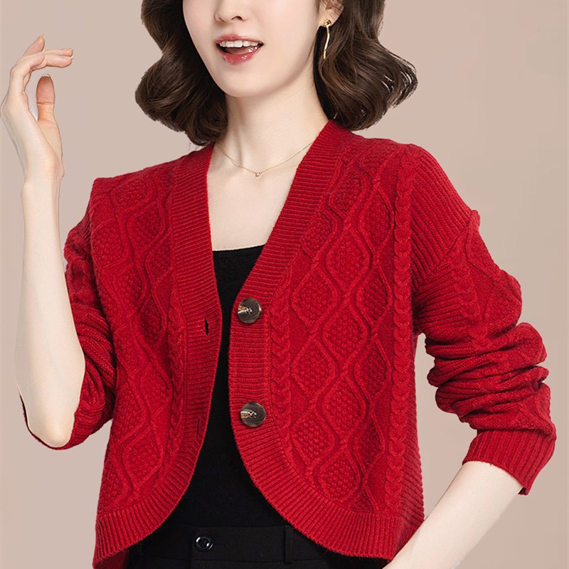 针织开衫女士披肩上衣春秋2024新款短款外搭配裙子小个子毛衣外套