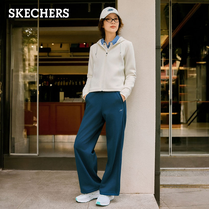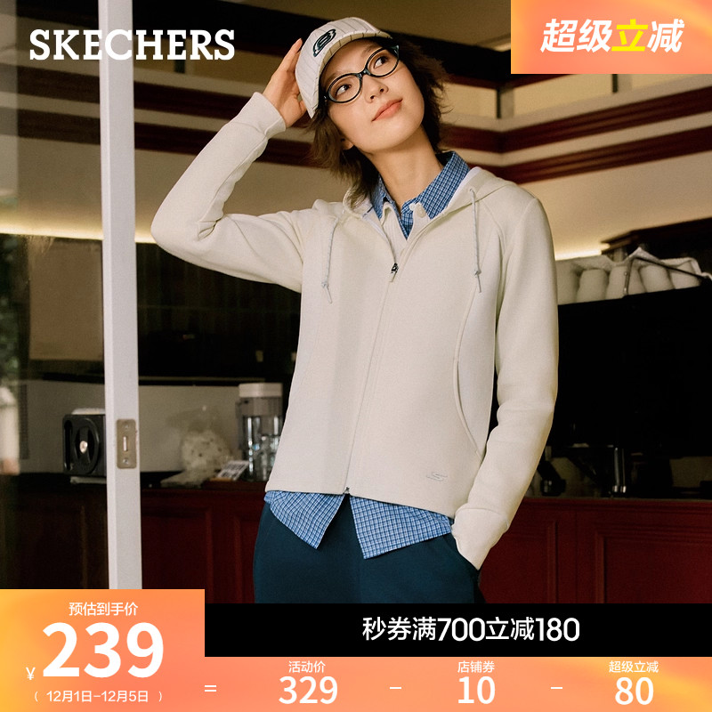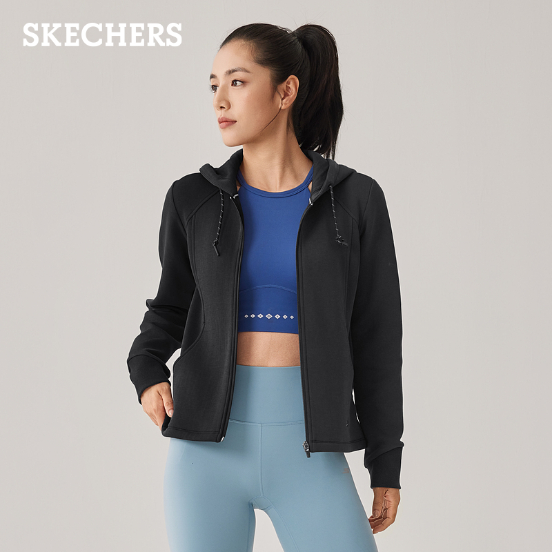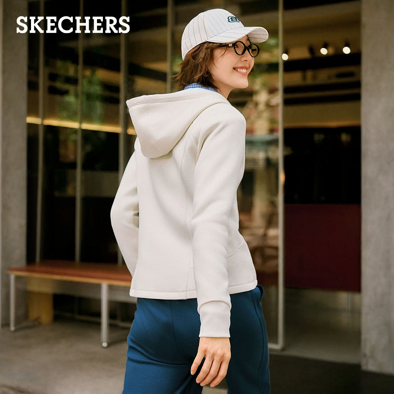 斯凯奇2025秋冬新品女修身针织连帽舒适保暖外套户外运动休闲夹克