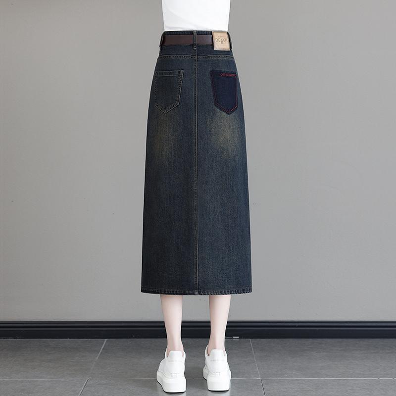 爆款女装中长款牛仔半身裙女2025秋季新款设计感百搭毛边包臀裙子