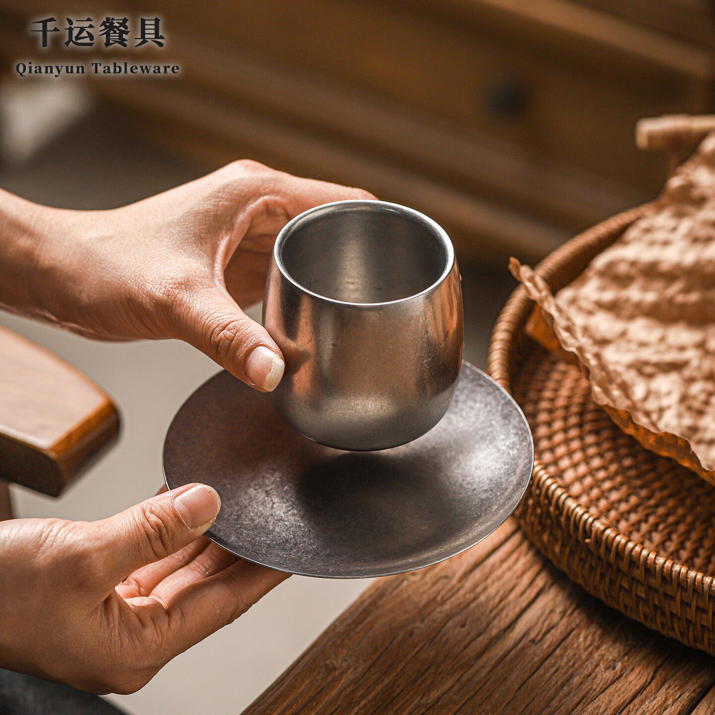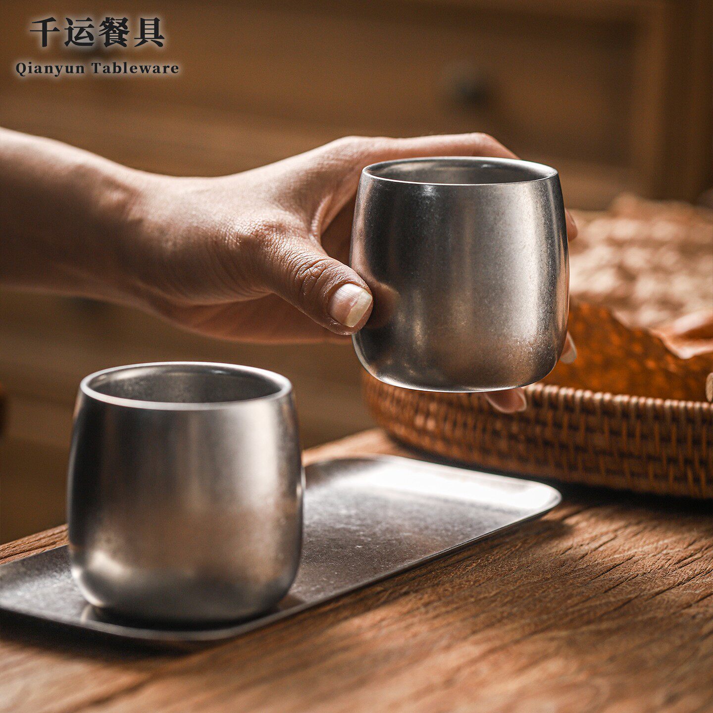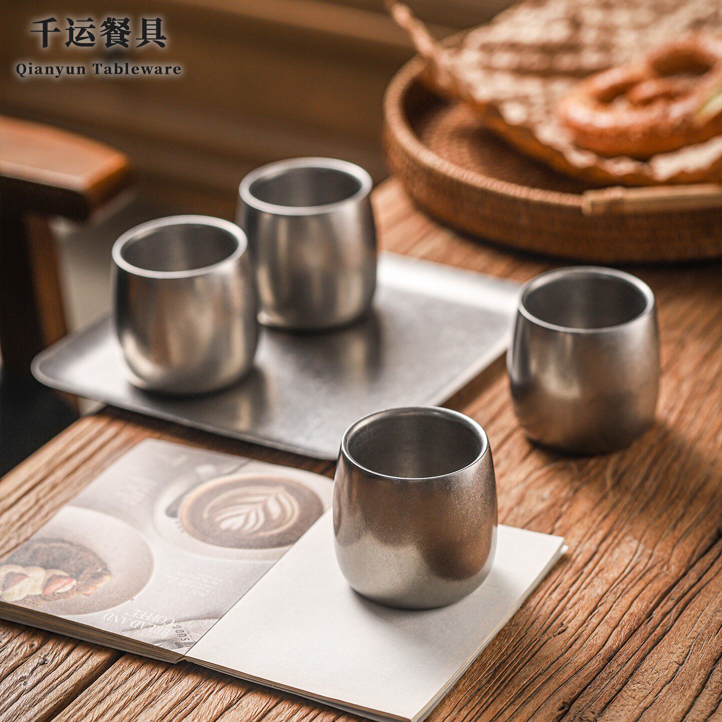 复古304不锈钢茶水杯水杯双层鹅蛋杯工业风简约小水杯旅行便携