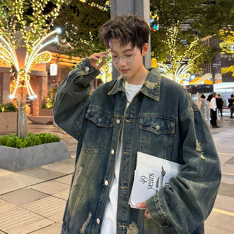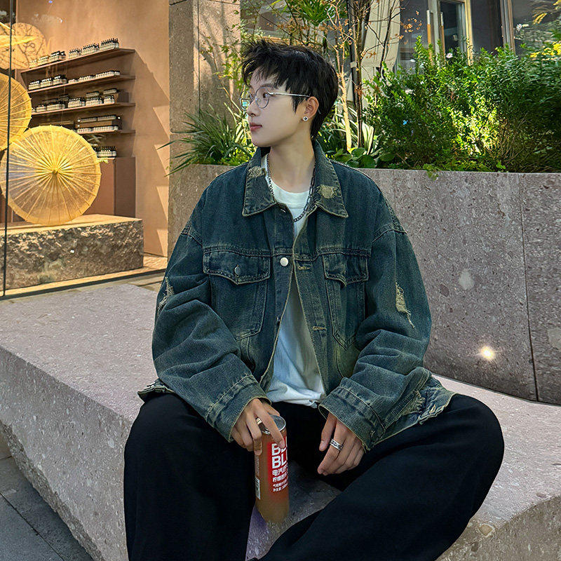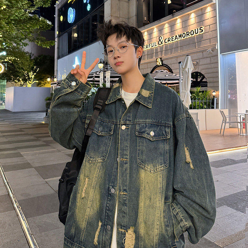 复古牛仔外套男春秋2026新款潮牌cleanfit宽松潮流休闲工装夹克男