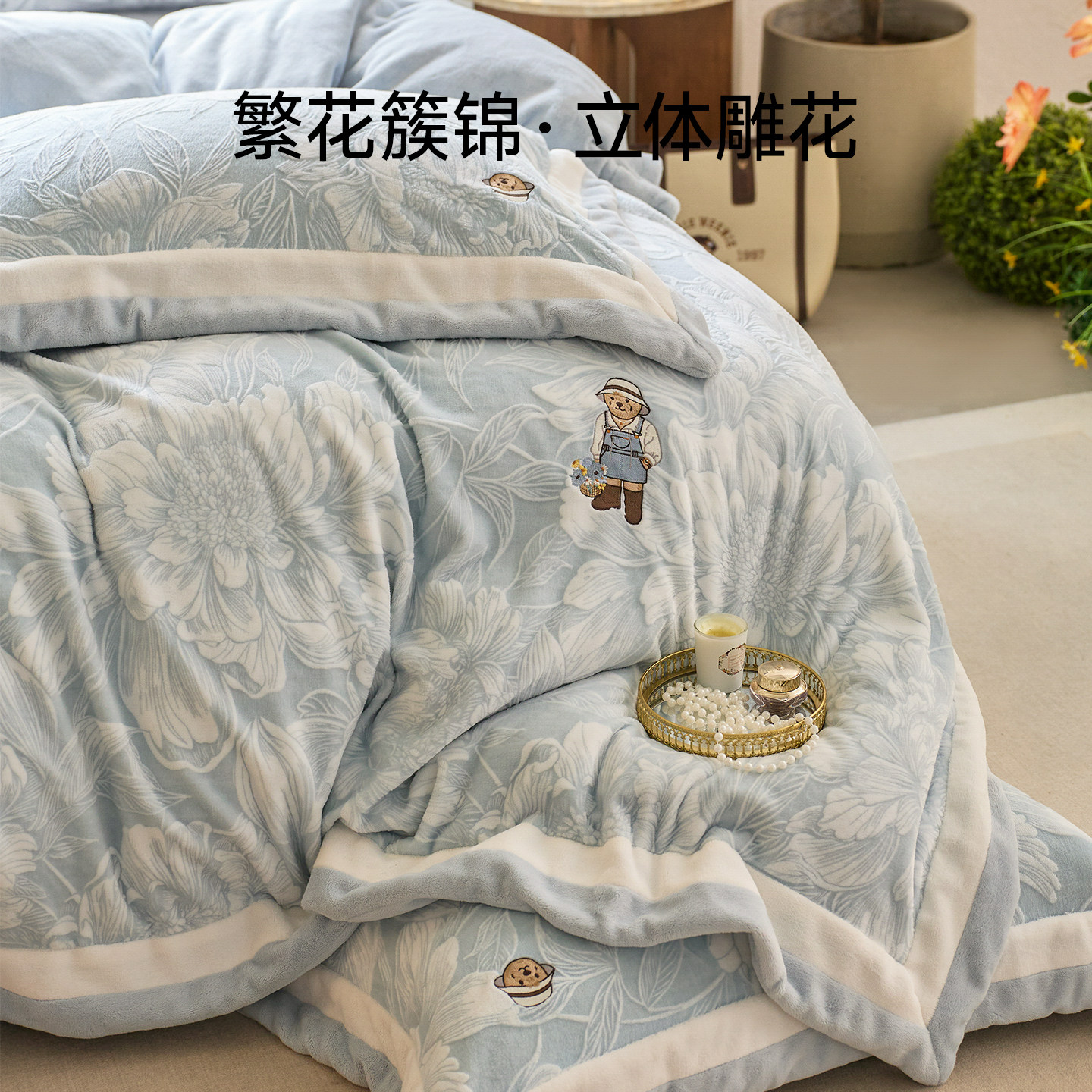 TeenieWeenie加厚牛奶绒四件套珊瑚绒床盖双面法兰绒被套床单冬季