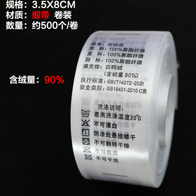 现货洗水唛洗水标中文英文成份标服装洗唛商标羽绒服标签水洗标