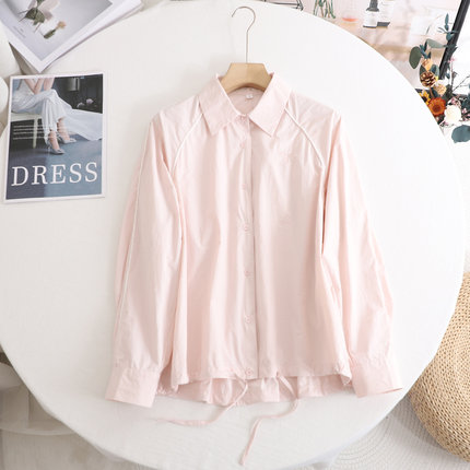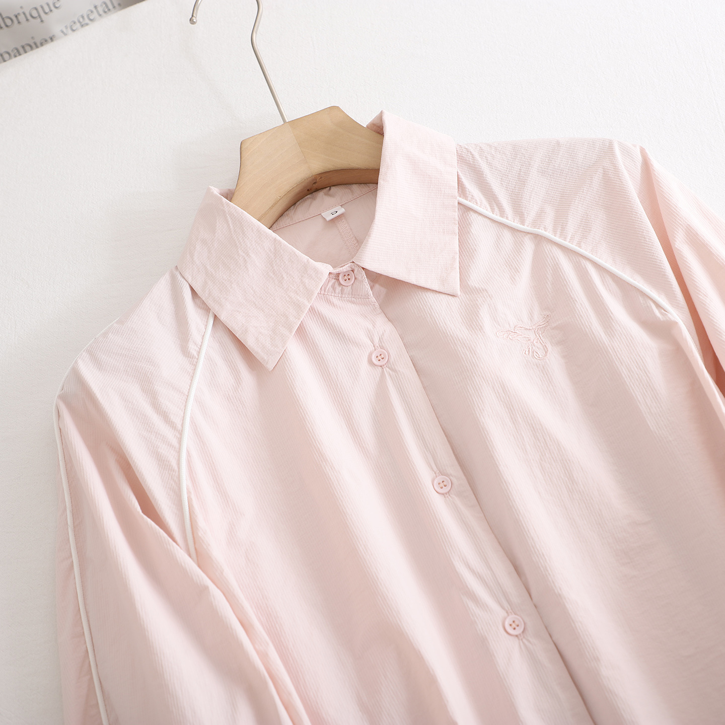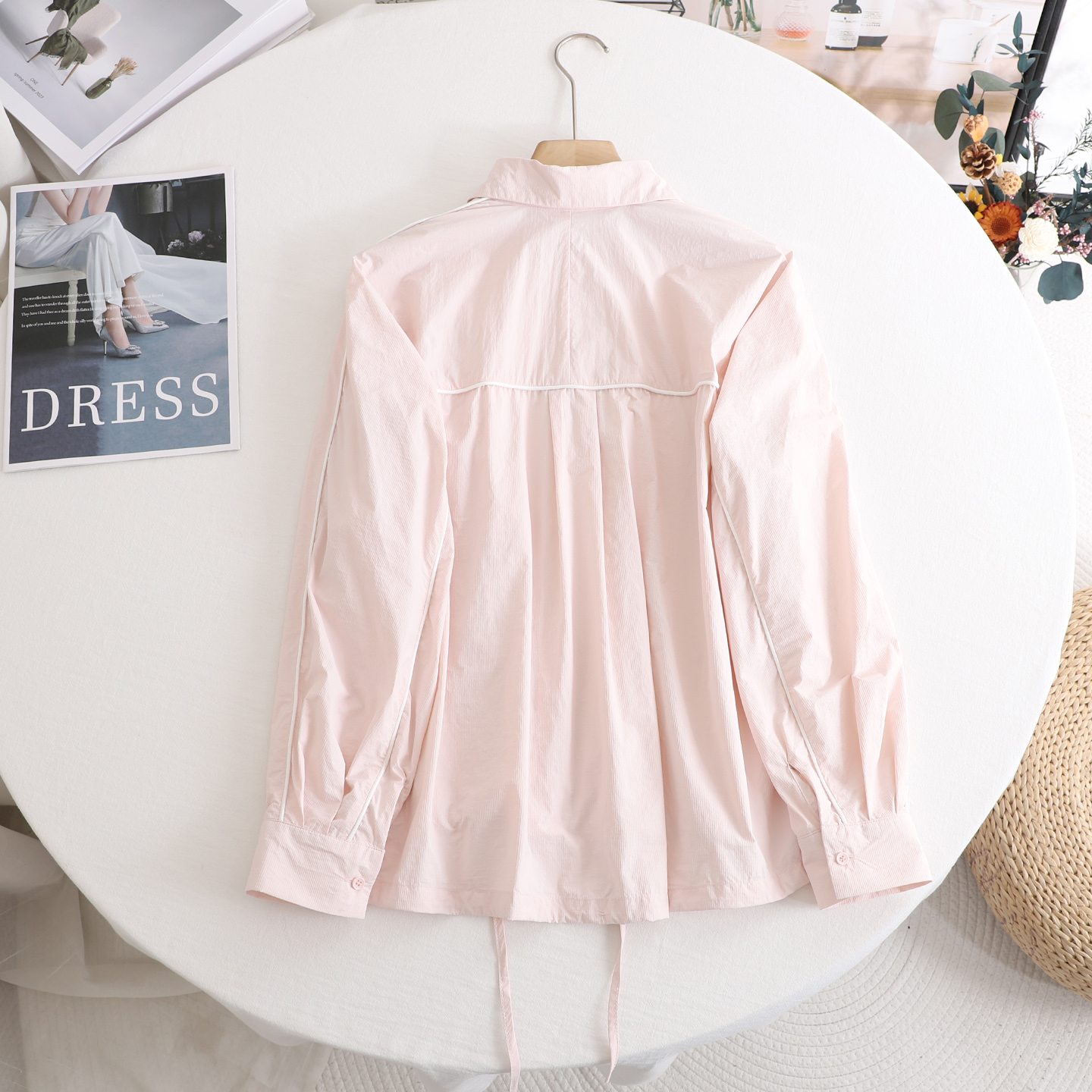2025夏季新款时尚百搭简约宽松显瘦气质百搭休闲防晒粉色衬衫女