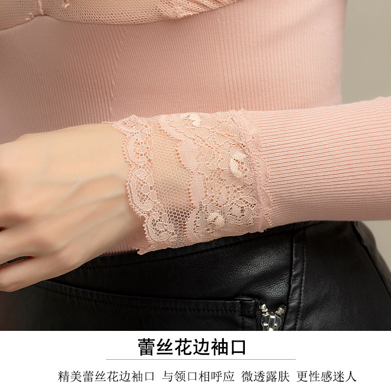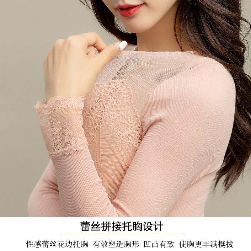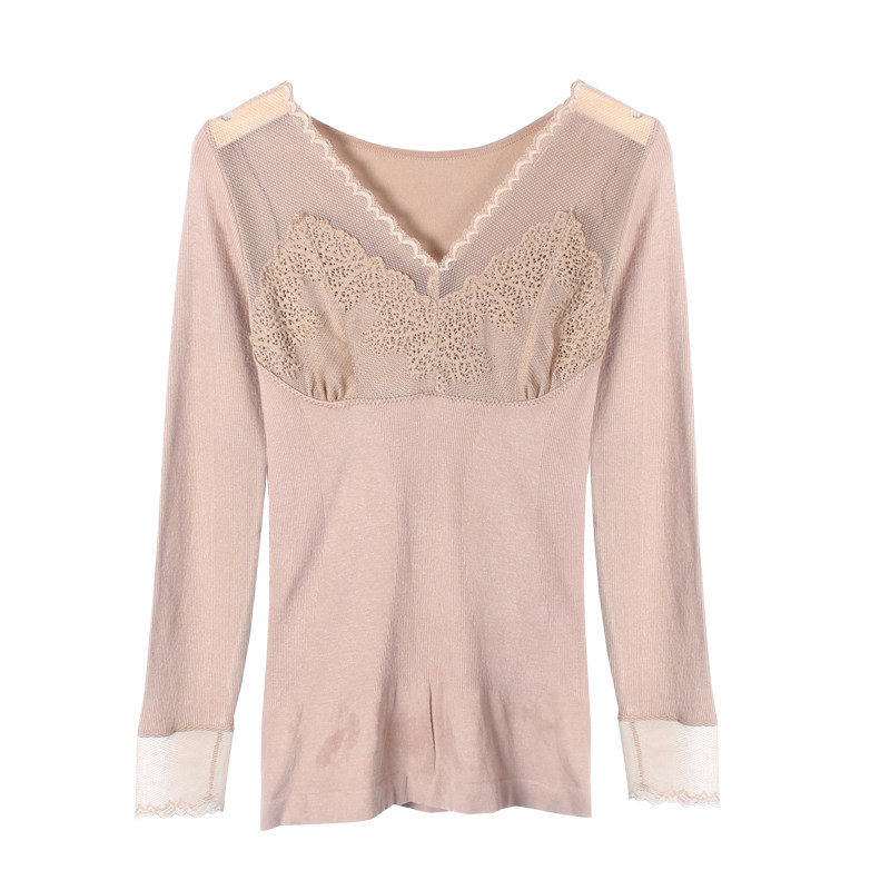 纯棉v领蕾丝衫塑身美体保暖上衣