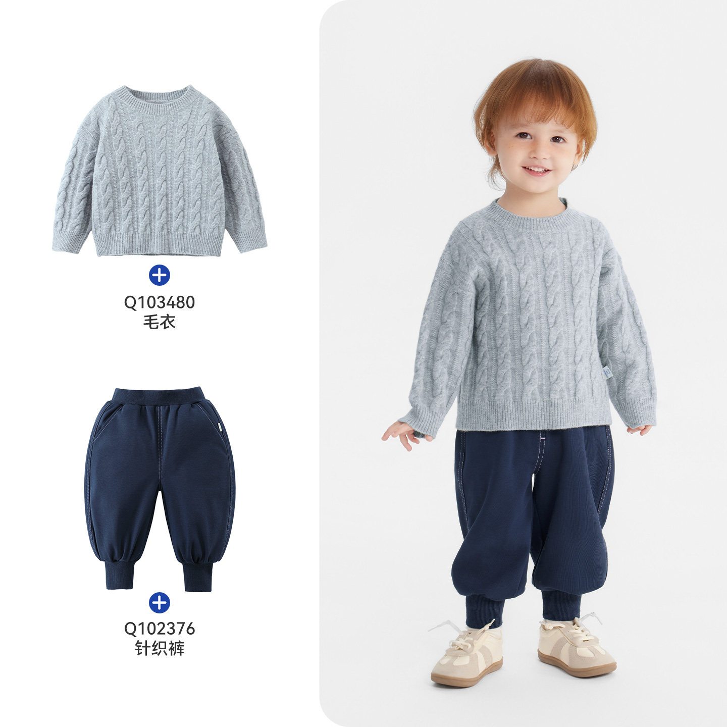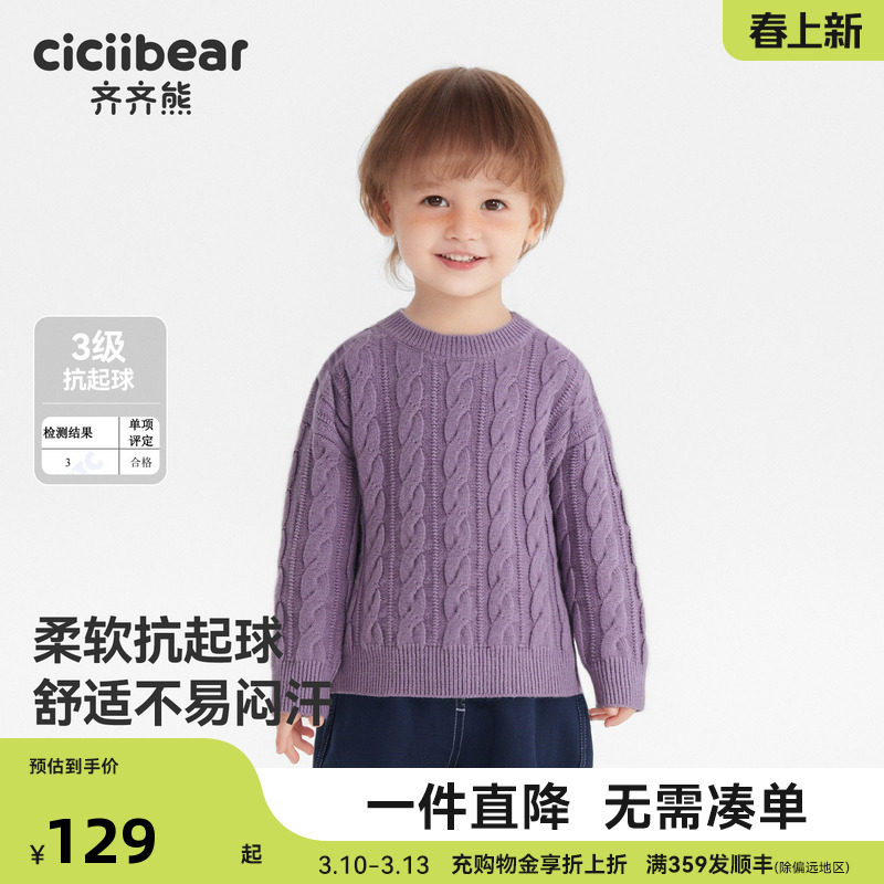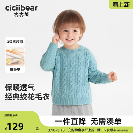 [绞花抗静电起球]齐齐熊男童毛衣冬款加厚宝宝打底针织衫上衣儿童