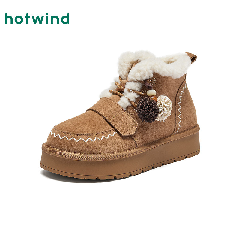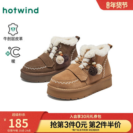 热风加绒雪地靴女鞋25年冬季新款增高显瘦复古棉鞋户外保暖短靴子