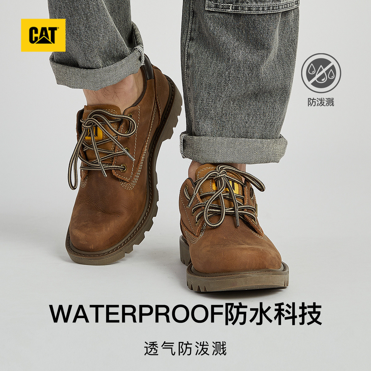 CAT卡特春季男女同款户外waterproof防泼溅皮鞋休闲鞋商场同款