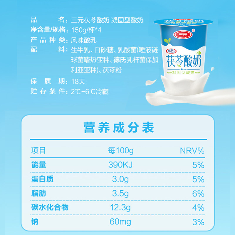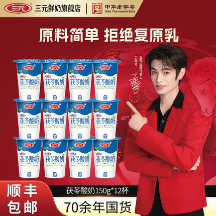 三元雪凝茯苓酸奶老北京风味酸牛奶150g*12杯装低温早餐奶