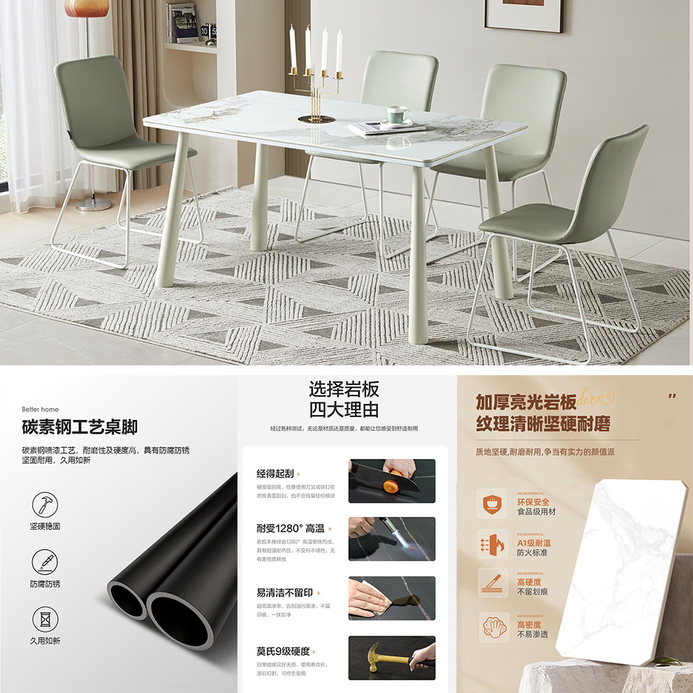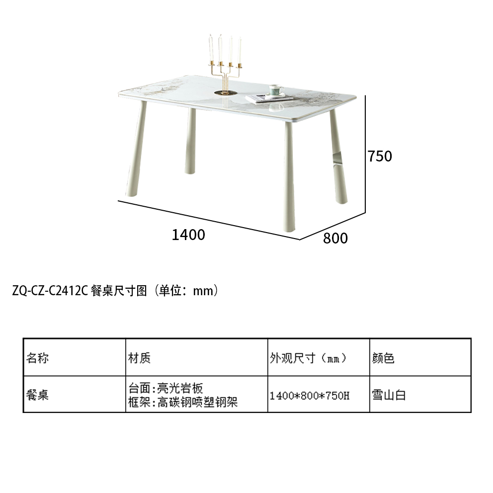Sunhoo/双虎 ZQ-CZ-C2412C餐桌轻奢现岩板餐桌