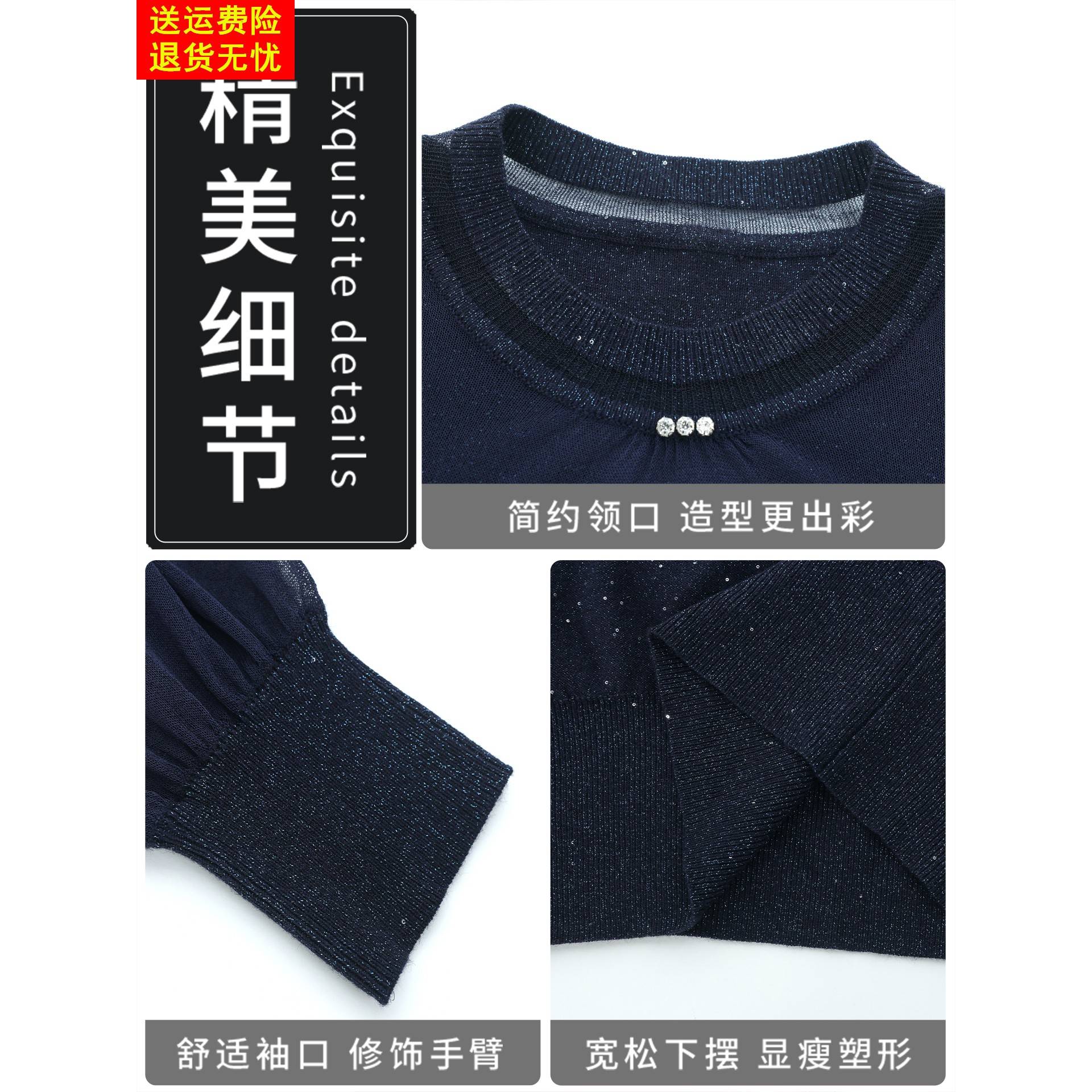 蕾丝纱袖毛衣女春秋装新款洋气妈妈宽松薄羊毛针织打底衫长袖T恤