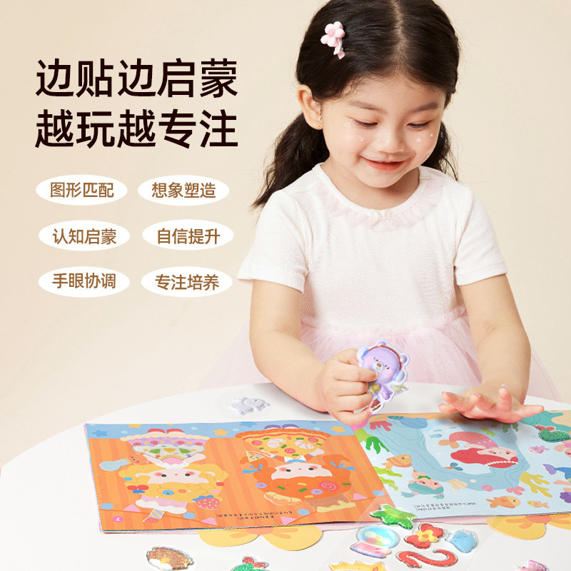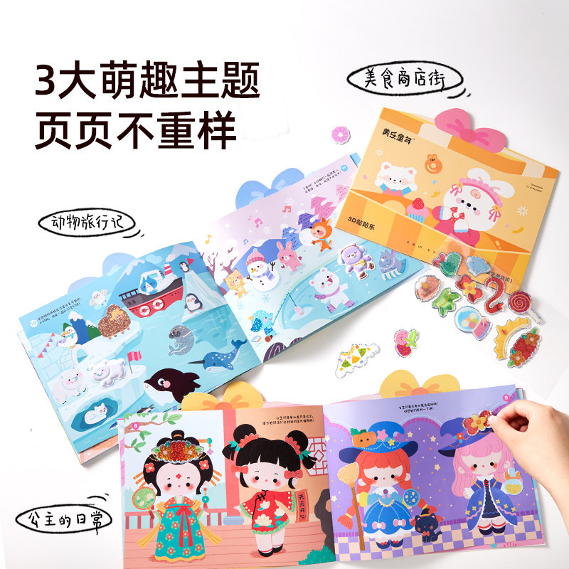 美乐童年儿童3D立体女孩公主果冻泡泡贴纸书安静水晶立体贴画玩具