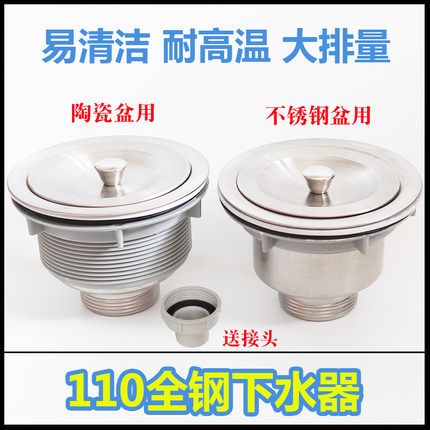 厨房洗菜盆110下水器不锈钢水槽提篮提笼长牙洗衣柜池下水器配件