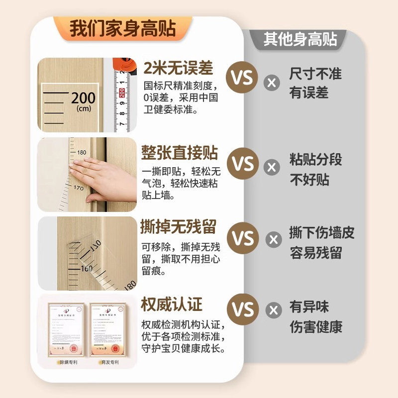 透明身高测量三围尺墙贴家用隐形不伤墙神器精准儿童门框量身高尺