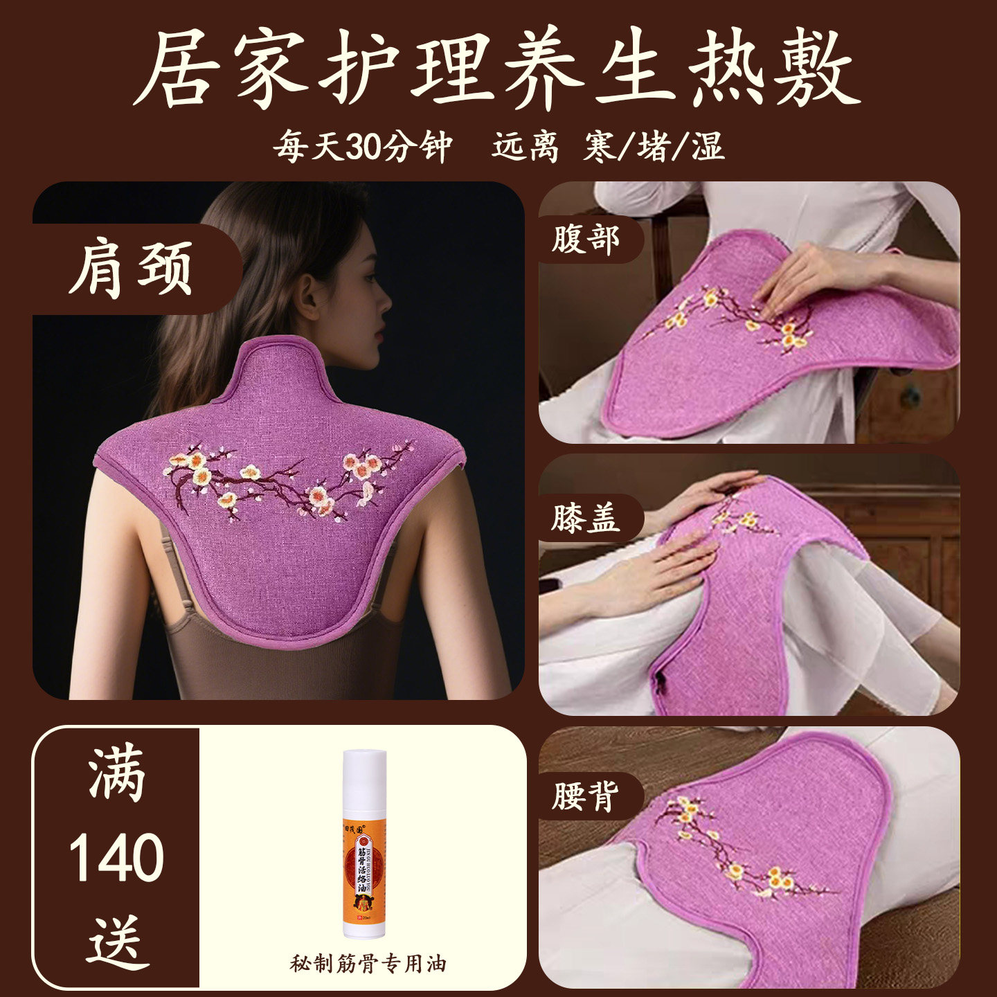 智能温控海盐粗盐热敷护肩艾灸艾草电加热坎肩疏通经络披肩理疗袋