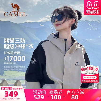 骆驼熊猫系列户外冲锋衣女款夏单层小个子外套防水防风新款登山服