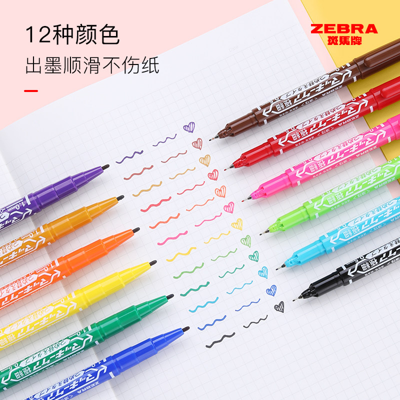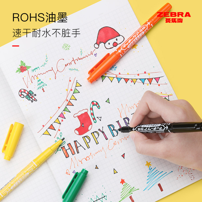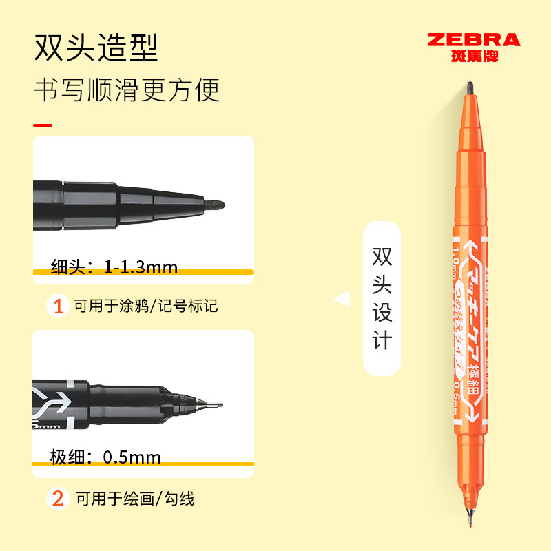 斑马牌YYTS5双头记号防水不掉色油性黑色粗细勾线笔学生用马克笔美术生专用绘画油性笔