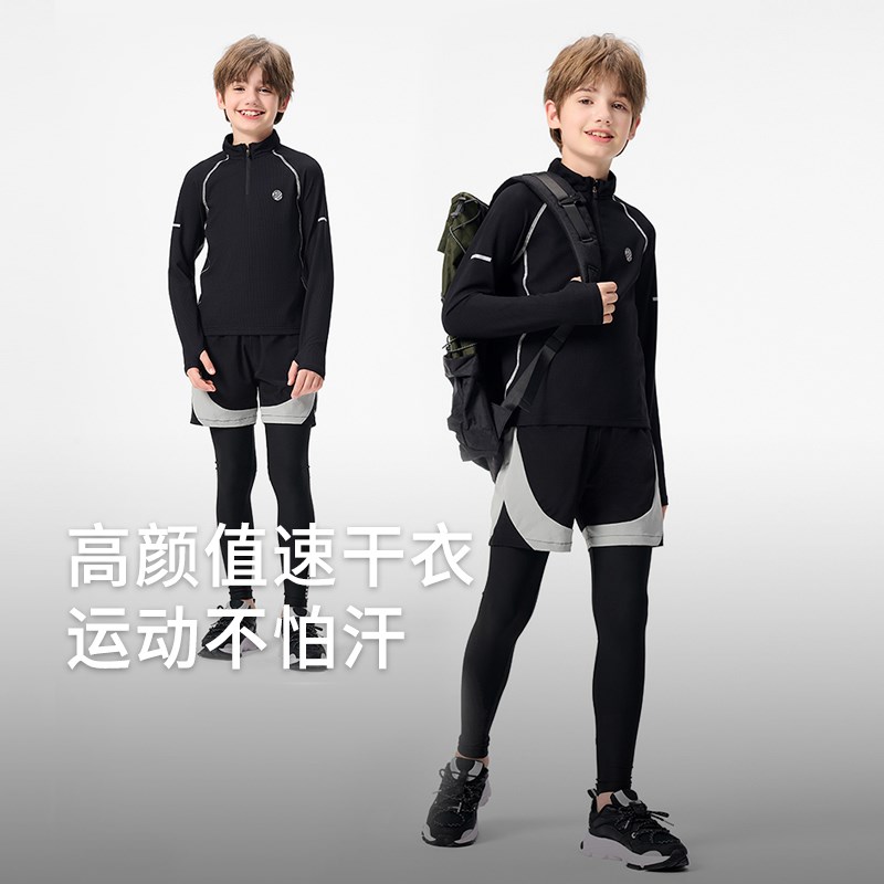 男童速干套装春季运动服透气紧身衣弹力儿童篮球羽毛球跑步训练服