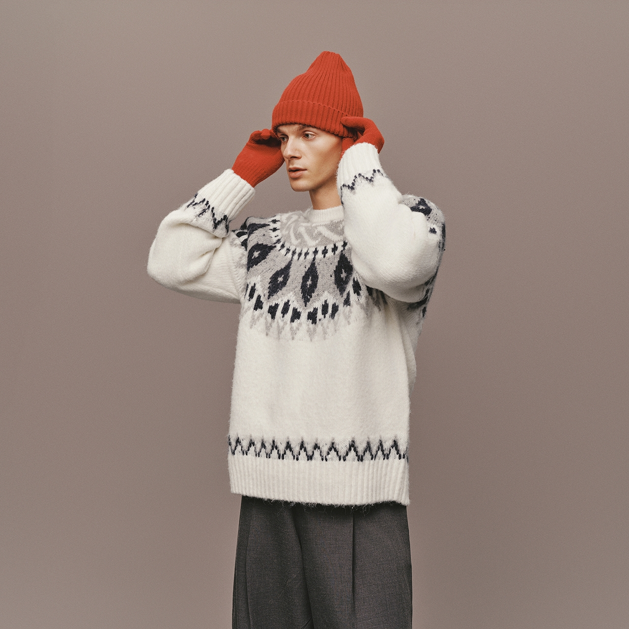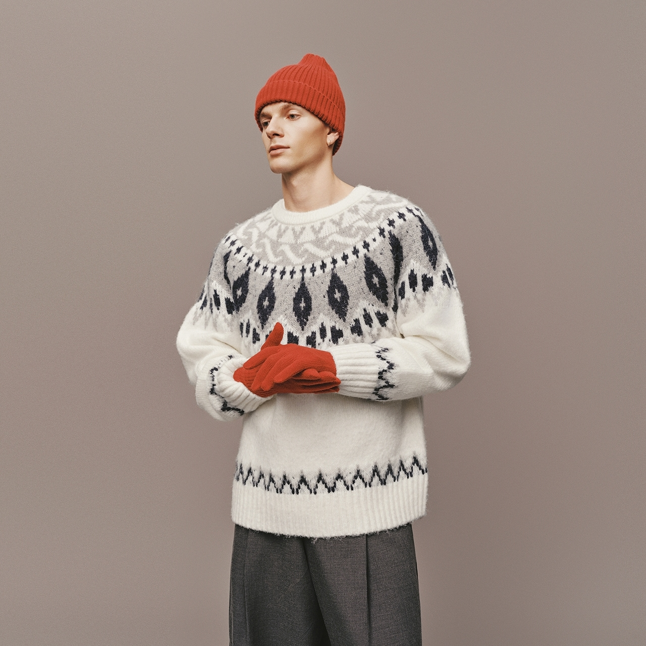 王安宇同款森马毛衫男费尔岛提花针织衫25冬季情侣复古毛衣幻彩纱