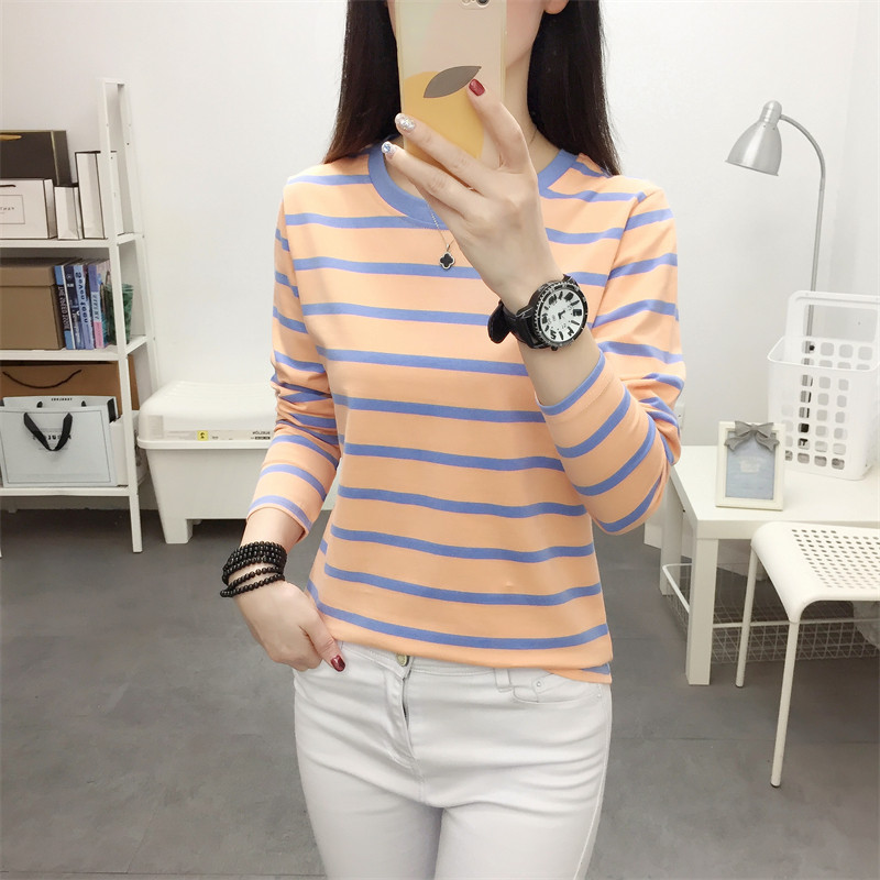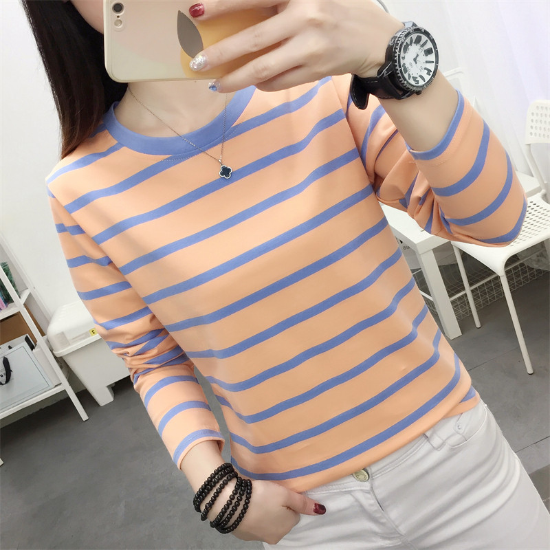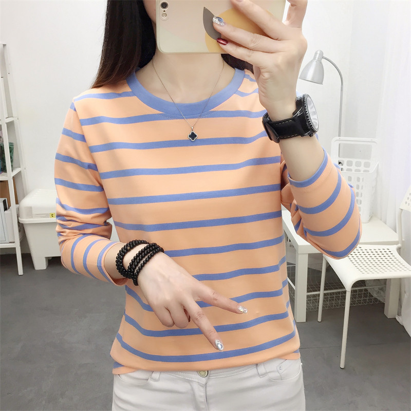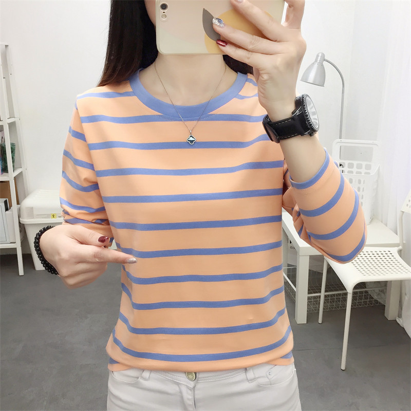 2025年春装新款纯棉长袖t恤女宽松大码条纹显瘦遮肚子秋衣打底衫