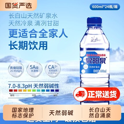 泉阳泉长白山天然矿泉水600ml小瓶整箱装弱碱性饮用水山泉瓶装