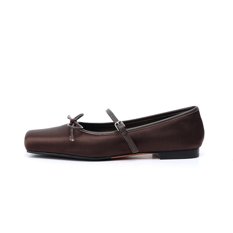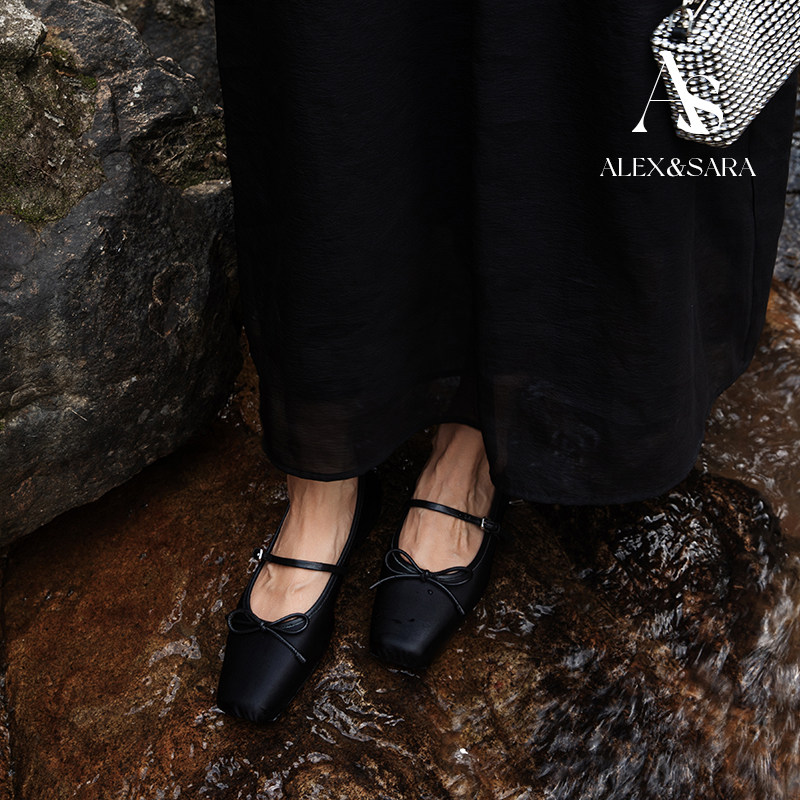 ALEXSARA原创设计 2025早秋新款 方头蝴蝶结真丝芭蕾跳舞鞋平底鞋