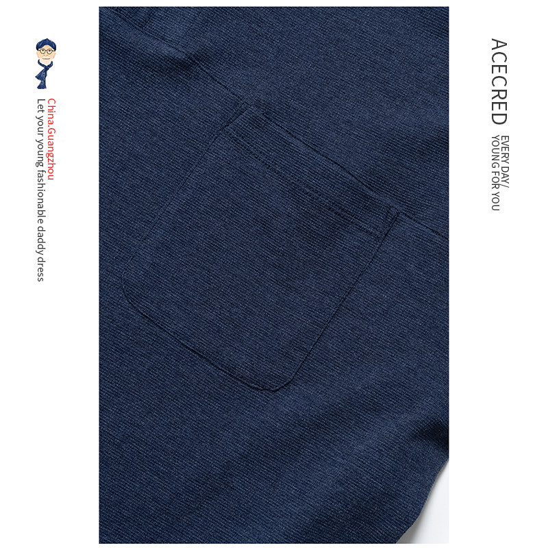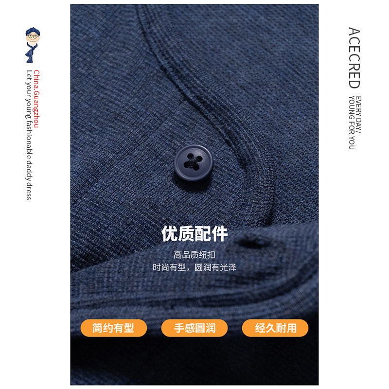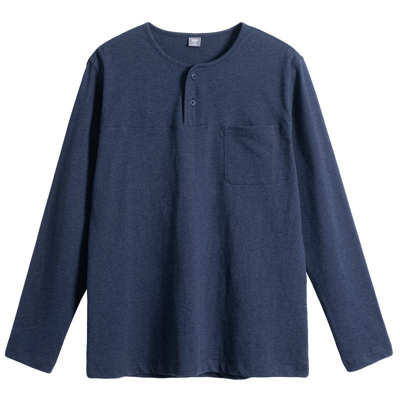 中年爸爸秋装纯棉长袖T恤男中老年人宽松亨利领秋季老人爷爷衣服