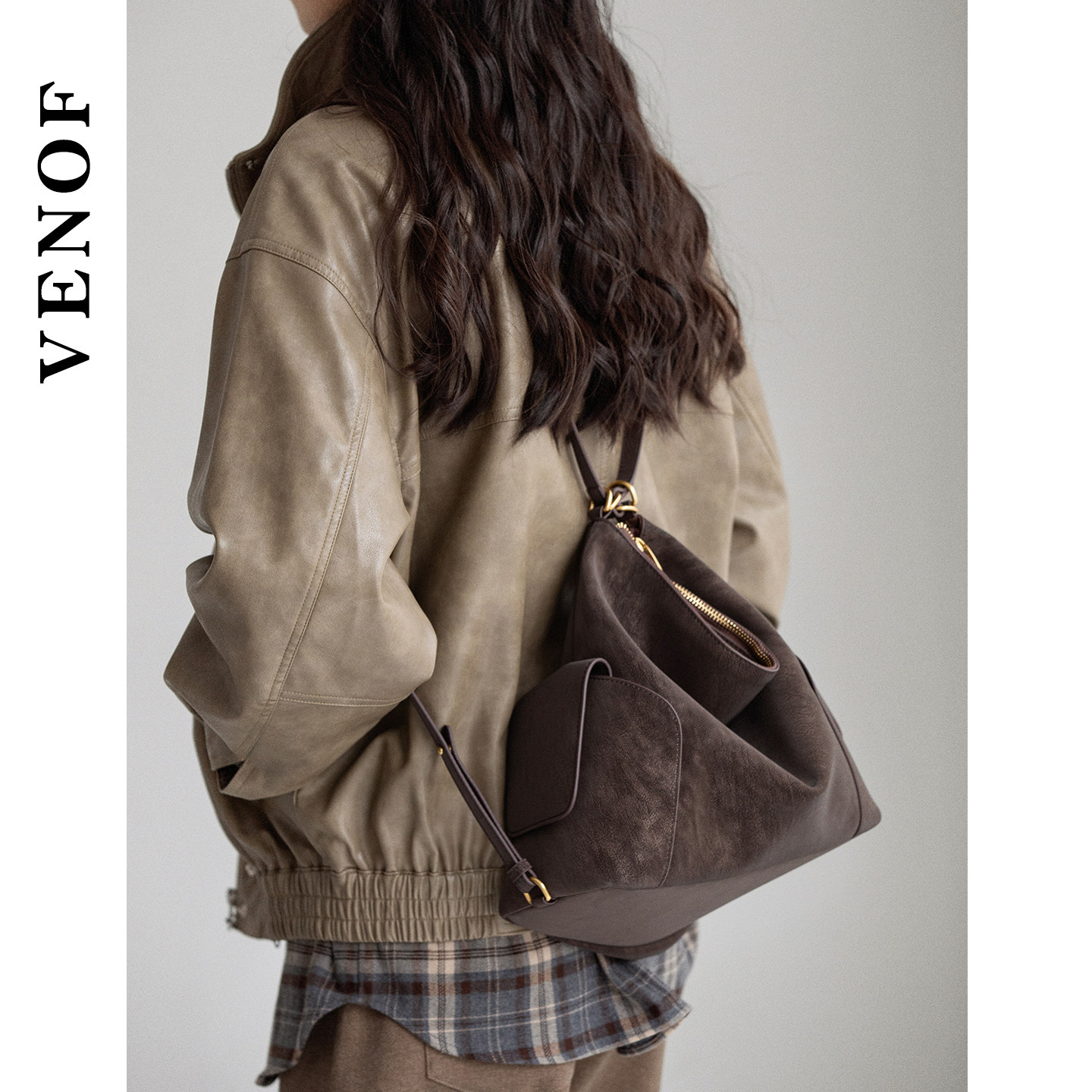 维洛芬 行吟 托特包女斜挎高级小众真牛皮单肩一包三用双肩水桶包