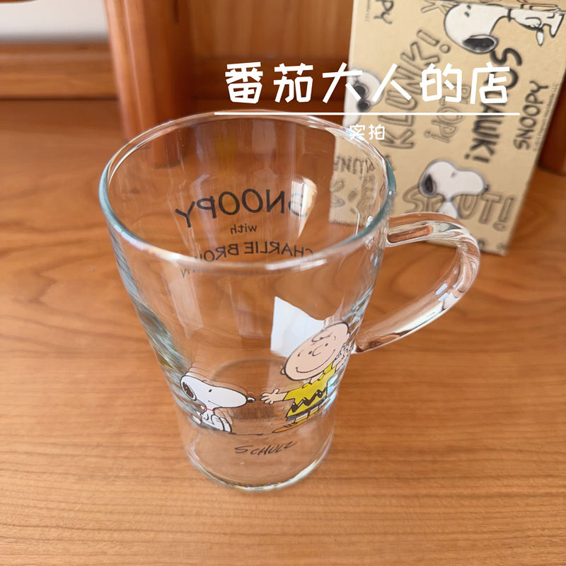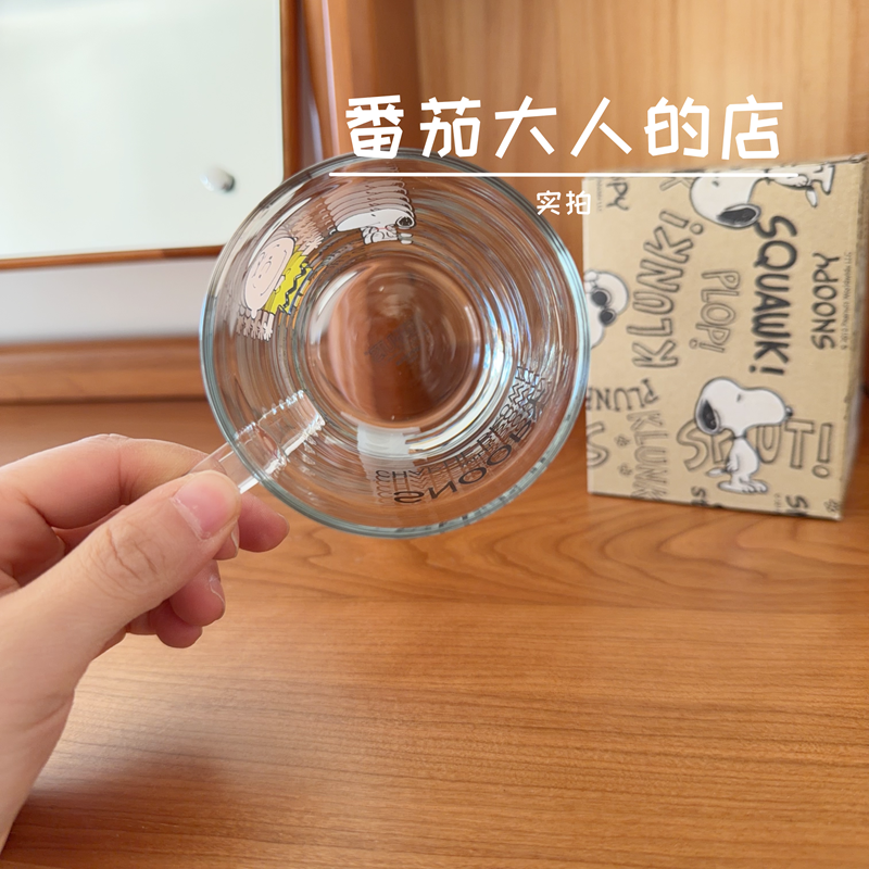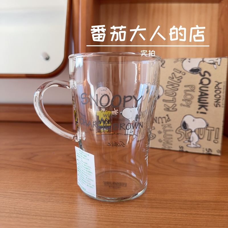 现货!日本制史努比卡通可爱经典款耐热玻璃杯果汁杯咖啡杯水杯
