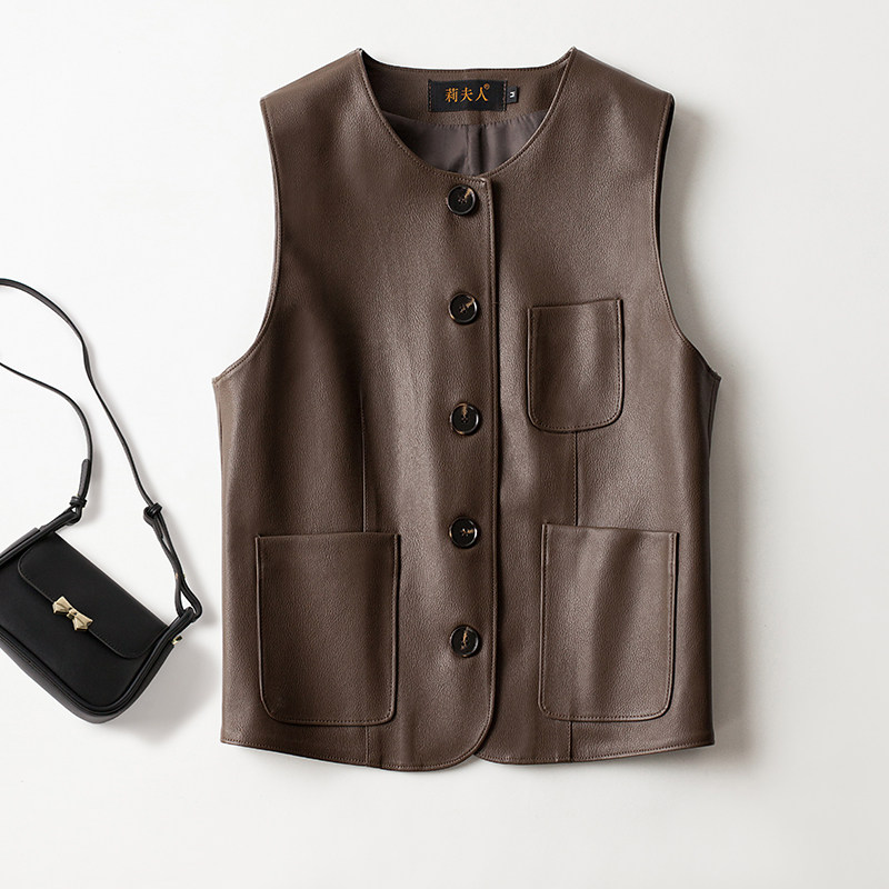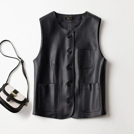 海宁真皮皮衣马甲女2025春秋时尚百搭修身短款无袖绵羊皮背心外套