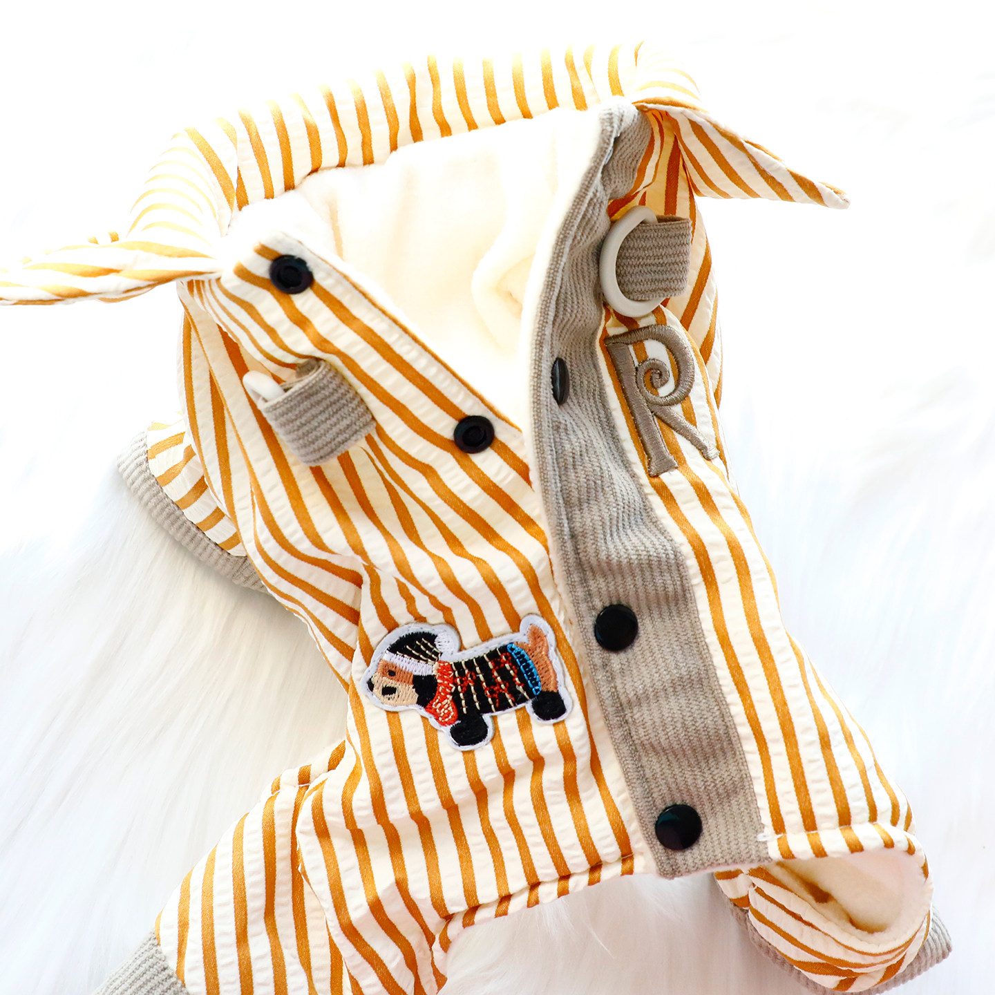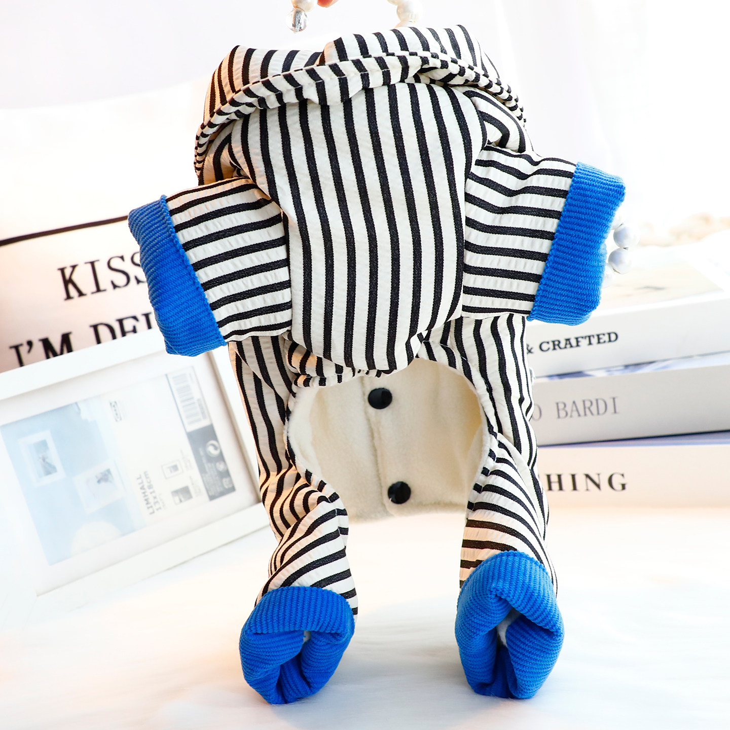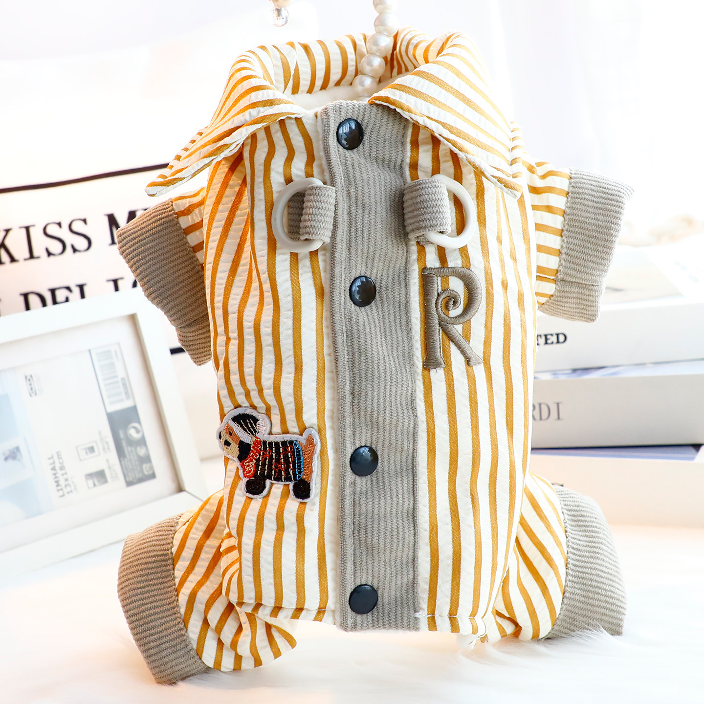 狗狗衣服秋冬装厚款竖条四腿牵引背开棉衣小型犬泰迪比熊宠物7388